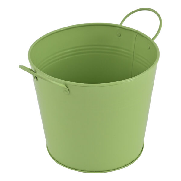 Charming Green Iron Bucket Planter with Black Polka Dots and Handle