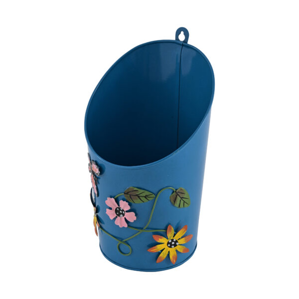 Decorative Blue Iron Wall Planter with Colorful Floral Accents