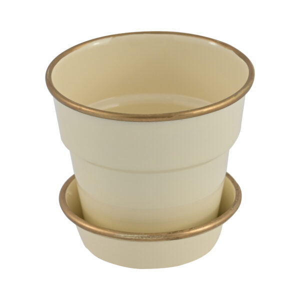White & Gold Iron Planter Pot with Drip Tray – Decorative Metal Flower Pot for Indoor & Outdoor Plants | Stylish Garden, Balcony & Home Décor Plant Holder
