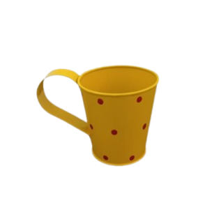 Yellow Polka Dot Iron Planter Pot with Handle | Decorative Metal Pot for Indoor & Outdoor Plants