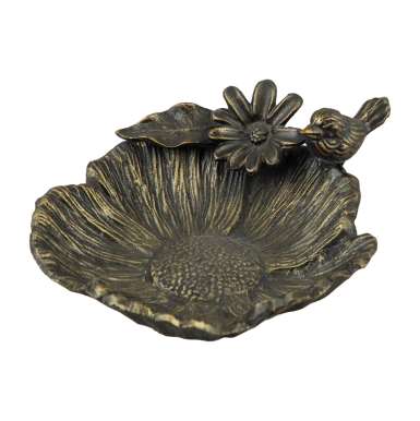 Glass Bowl with Aluminium Lid & Wooden Base – Small Decorative Bowl with Gold Floral Stem – Stylish Table & Kitchen Décor