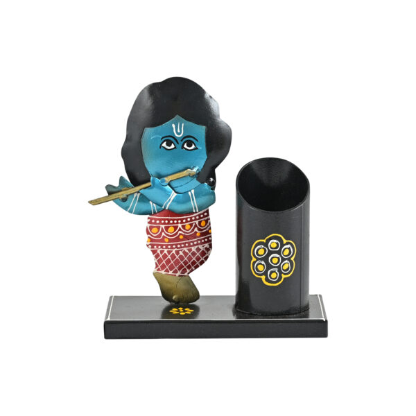 Handcrafted Krishna Pen Holder | Decorative Desk Organizer | Traditional Indian Art Stationery Holder