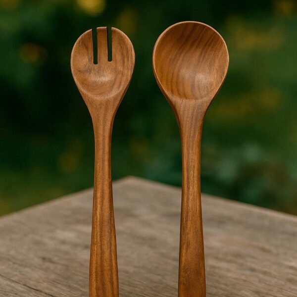 Wooden Salad Server Set of 2 – Handcrafted Serving Spoon & Fork