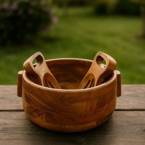 Handcrafted Wooden Salad Bowl with 2 Hands – Premium Tabletop Serveware
