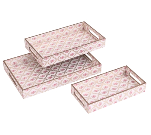 Vintage Floral Wooden Serving Trays – Set of 3 with Handles, Decorative & Multi-Purpose