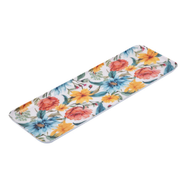 Metal Serving Tray – 33×11 Cm Rectangular Melamine Platter with Blue and Orange Flower Pattern