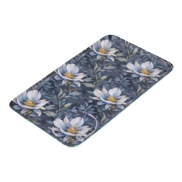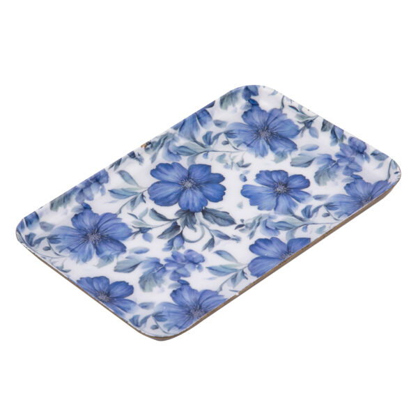 Metal Iron Serving Tray – 15×10 Cm Rectangular Blue Floral Pattern, White Background, Rectangular Decorative Tray for Serving