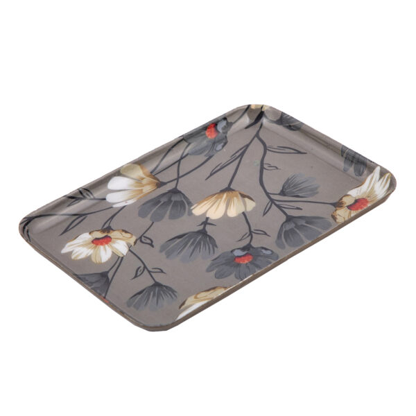 Metal Iron Serving Tray – 15×10 Cm Rectangular Grey Floral Pattern Decorative Serving Tray