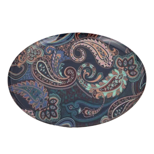 Metal Iron Serving Tray – Round Plate with Paisley Pattern, 25 cm, Navy Blue and Turquoise Tray for Serving