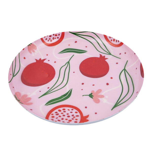 Decorative 25 Cm Round Serving Plate with Pomegranate Pattern, Pink and Red Floral Design Tray for Serving