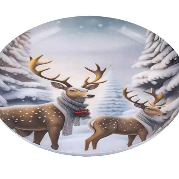 Decorative 25 Cm Round Serving Plate Winter Holiday Decorative Plate, Reindeer in Snow Scene, Round Christmas Serving Tray