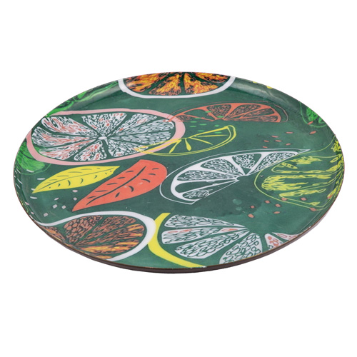 Vibrant Print 25cm Round Iron Serving Tray – Colorful Lemons, Oranges, and Grapefruit Design Decorative Tray