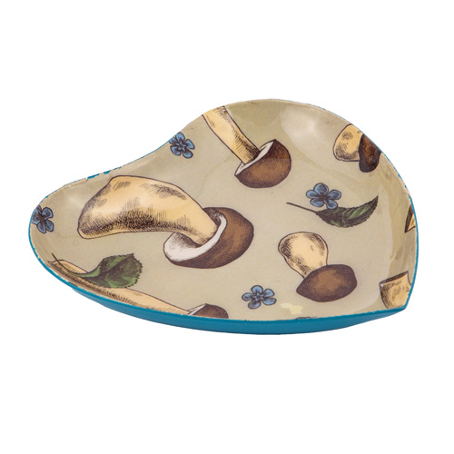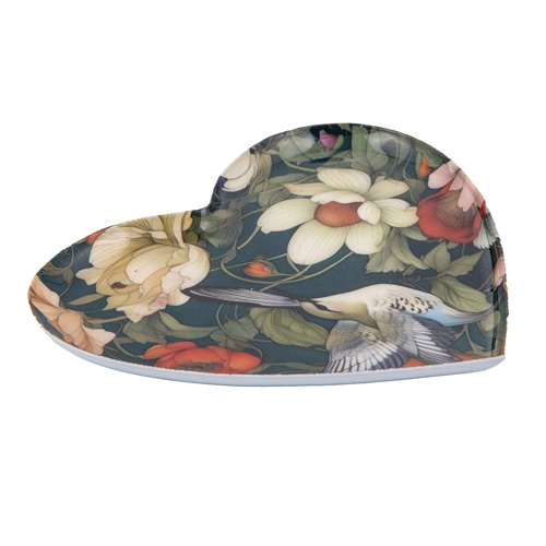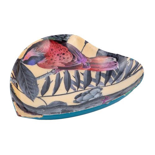Vibrant Print 15×17 Cm Heart-Shaped Iron Serving Tray – Vintage Floral & Bird Ceramic Emerald Green Design