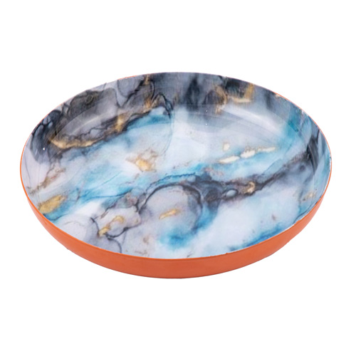 Metal Iron Serving Tray – 16 Cm Round Vibrant Abstract Blue Marble Print Iron Serving Tray