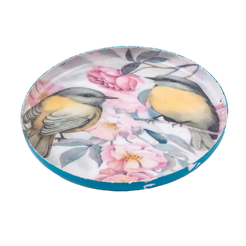 Metal Iron Serving Tray – Artistic Bird & Floral Iron Tray with Teal Rim (10 cm)