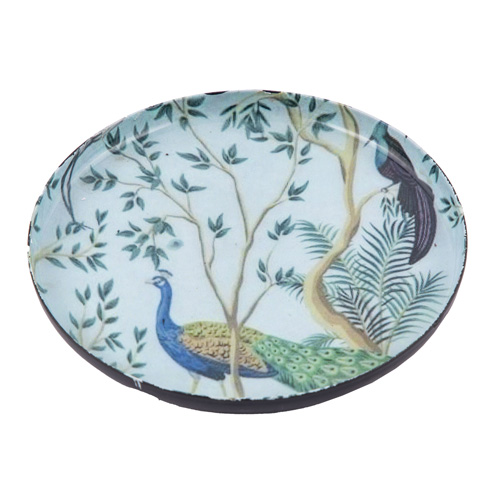 Metal Iron Serving Tray – Regal Peacock Garden Iron Tray with Blue & Green Artistry (10 cm)