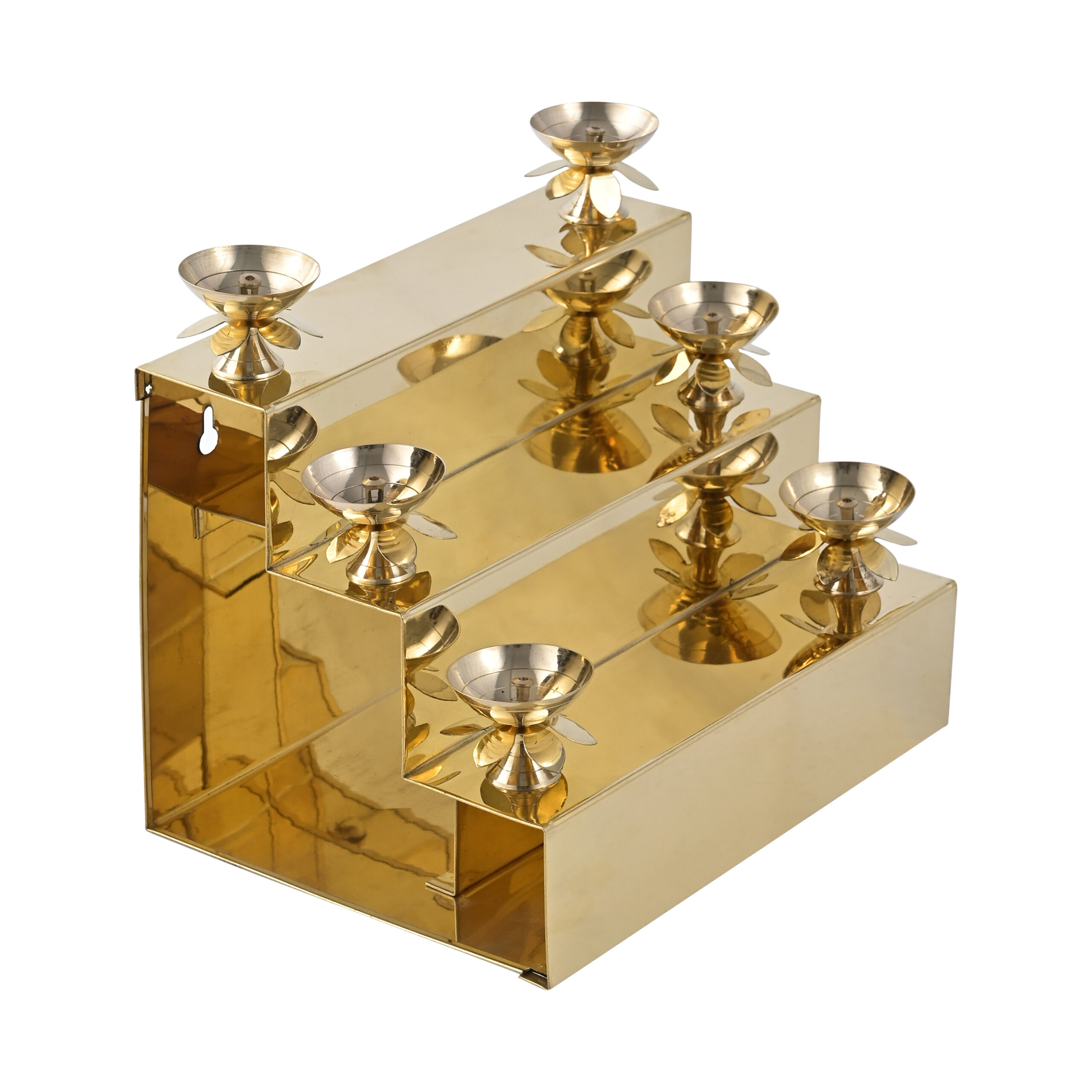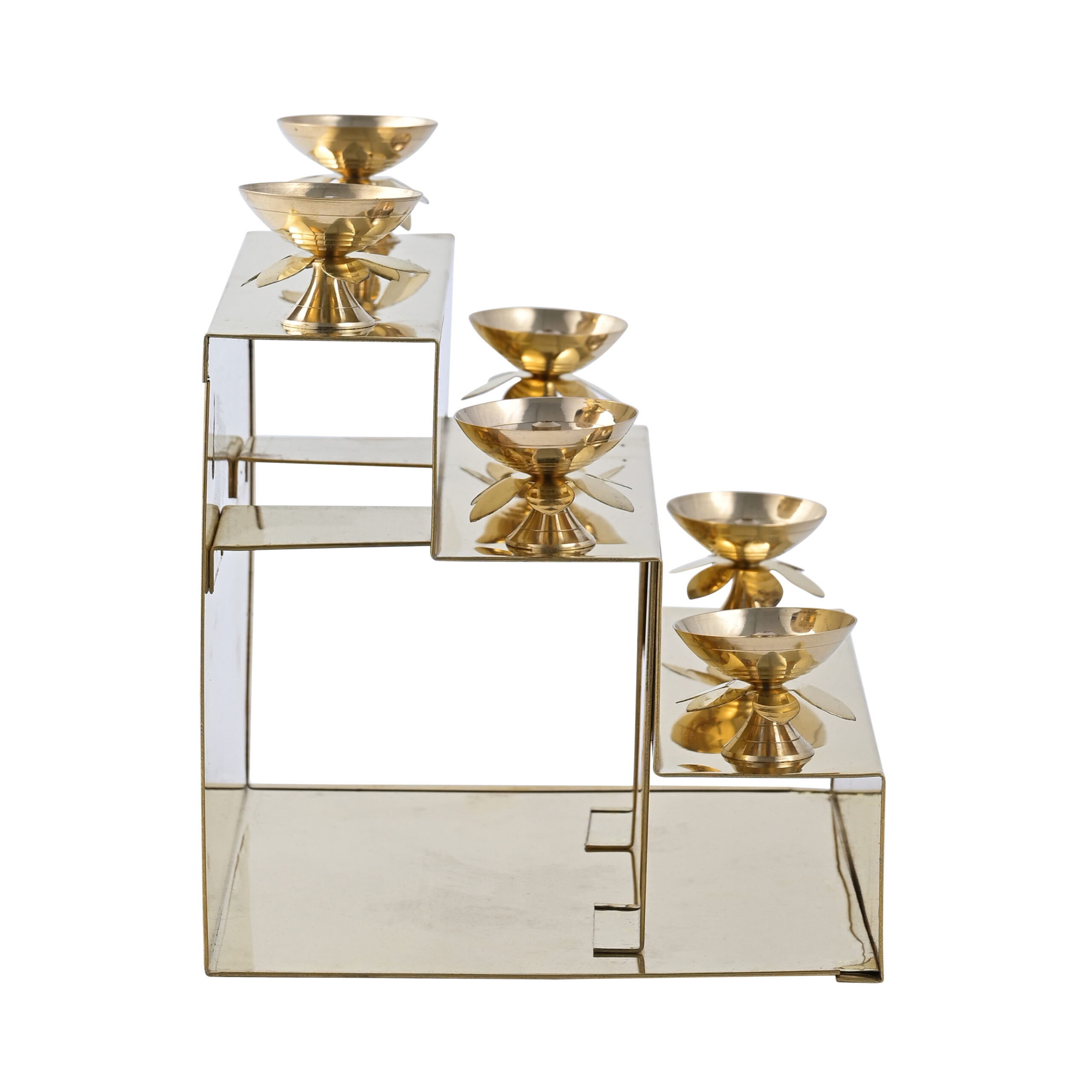 3-Tier Diya Stand: Elegant step-style design with 6 diya holders arranged across 3 levels for a classic and elevated look.