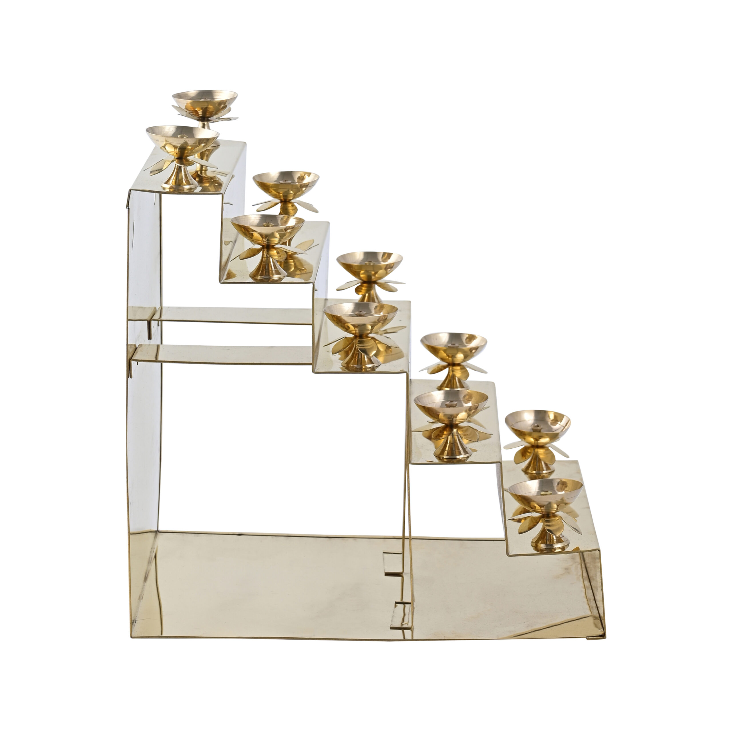 5-Step Brass Diya Stand with 10 Lights – Traditional Multi-Tier Oil Lamp for Pooja Room & Festive Decor