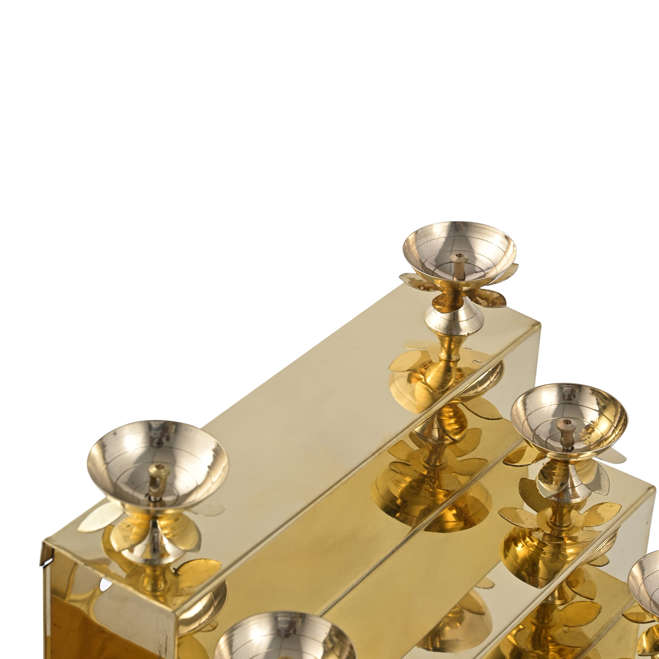 3-Step Brass Diya Stand with 6 Lights – Traditional Pooja Oil Lamp for Home Temple & Festive Décor