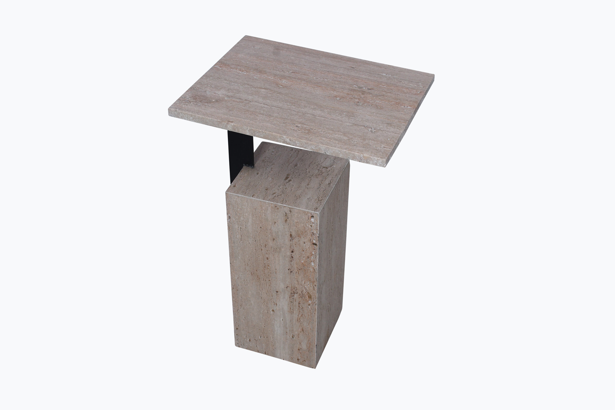 Beige Stone & Wood Finish Side Table – Minimalist Modern Design