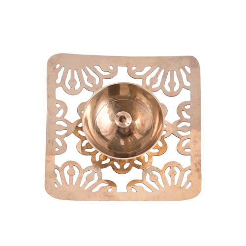 Brass Diya with Square Cutwork Base – Single Wick Oil Lamp for Puja & Aarti