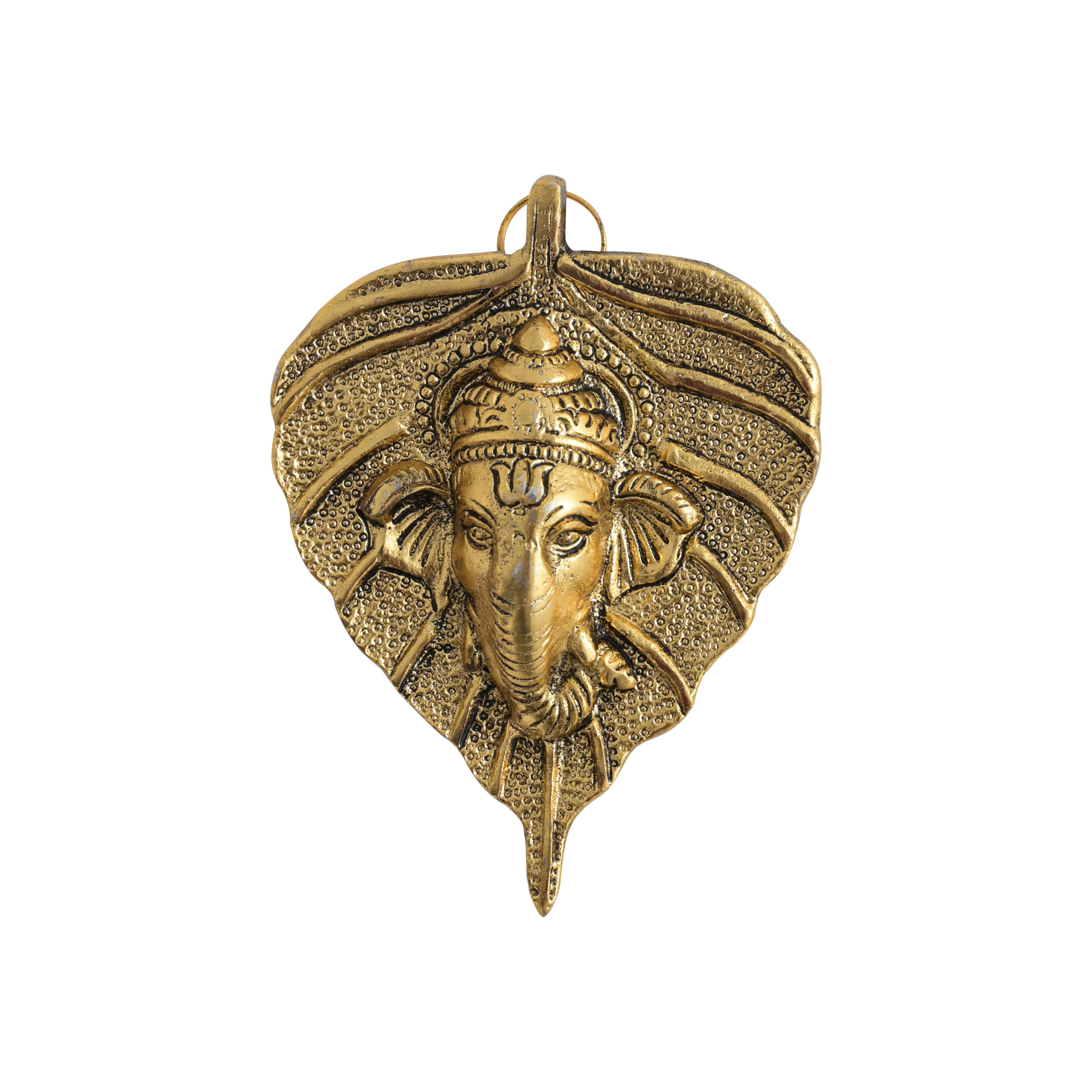 Brass Ganesha on Leaf Wall Hanging – Shiny Polished Hindu Décor