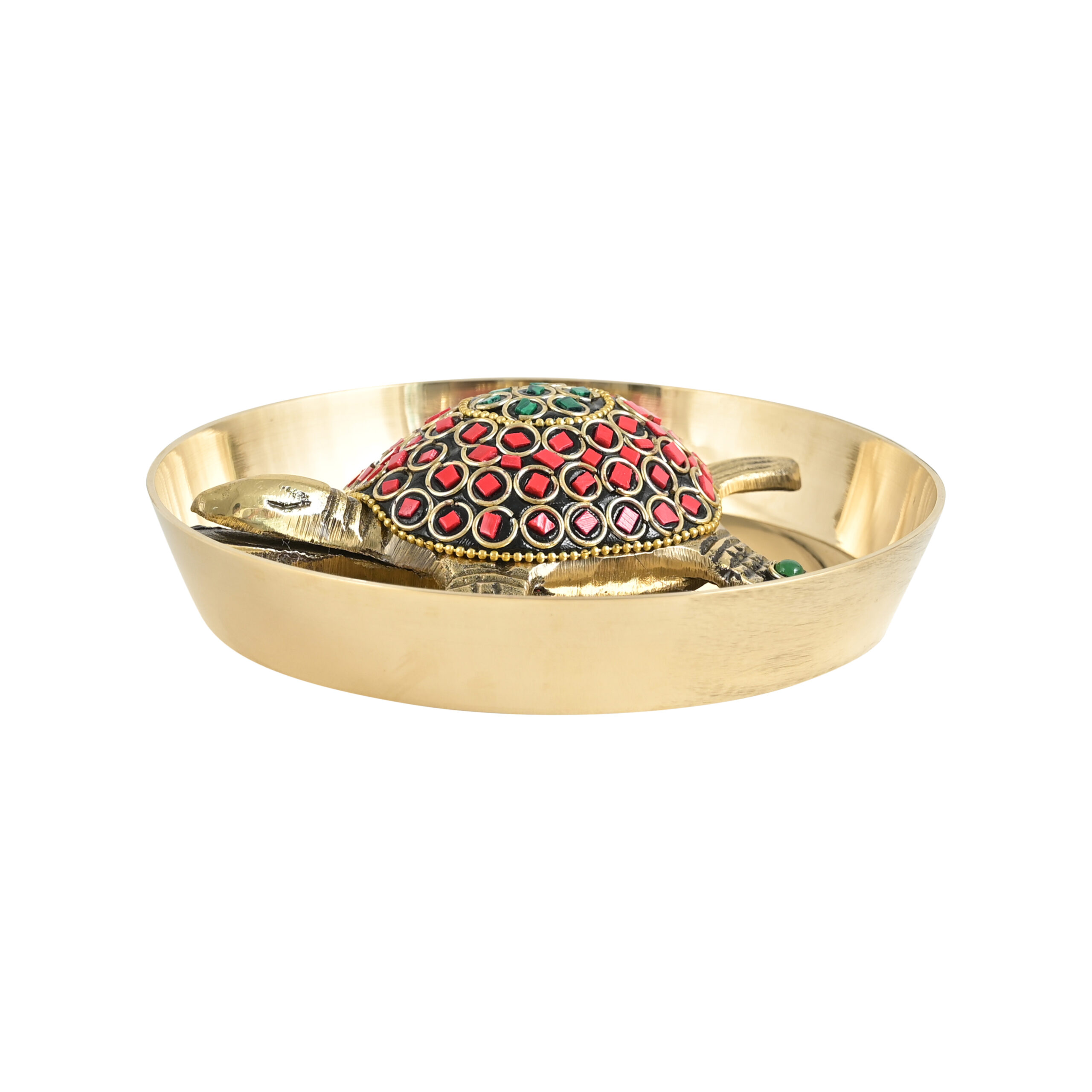 Brass Tortoise with Plate – Feng Shui & Vastu Turtle for Good Luck, Wealth & Prosperity | Decorative Brass Tortoise in Plate for Home & Office