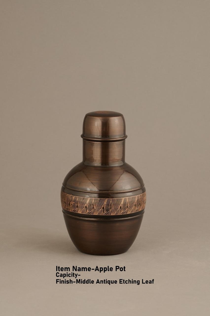 Copper Apple Pot with Middle Antique Etching – Bronze – 1300 ml