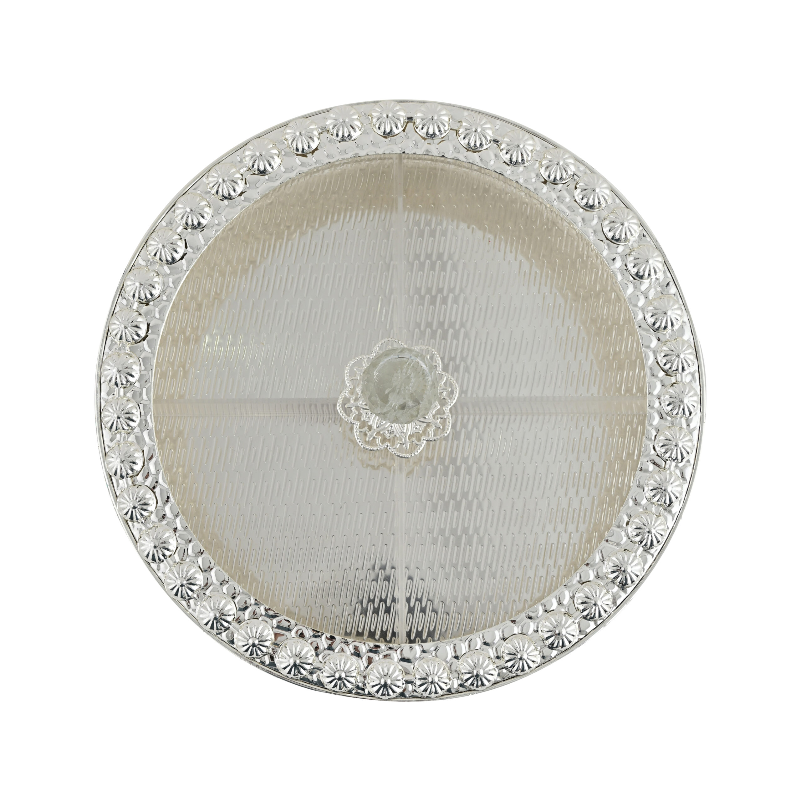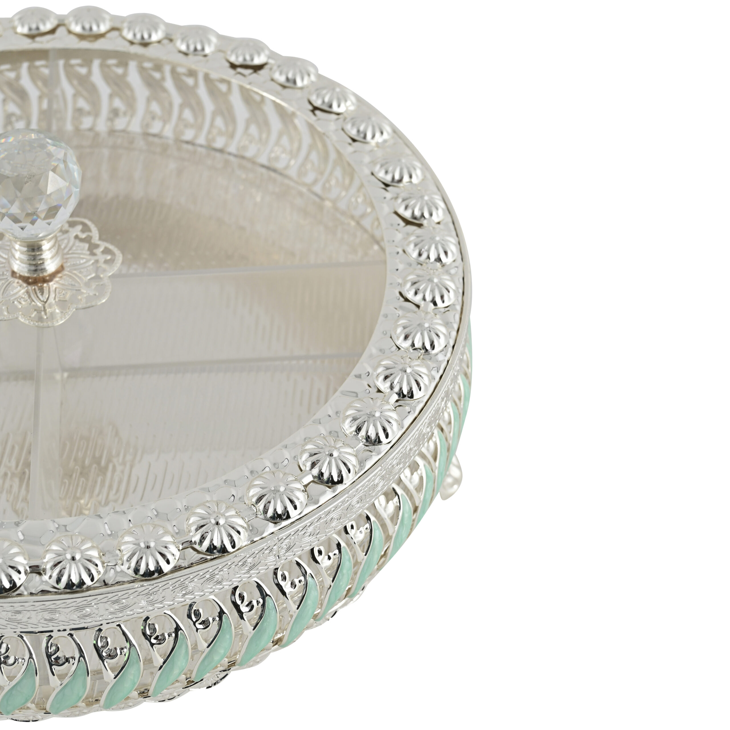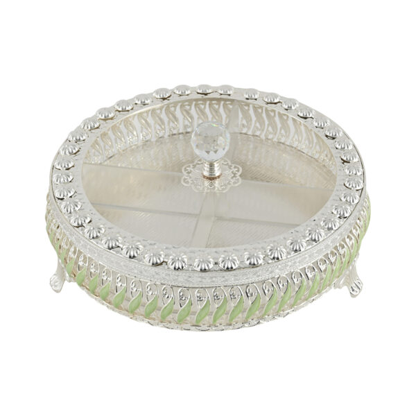Elegant German Silver Dry Fruit Box with Crystal Knob – Decorative 4-Section Storage Container for Dry Fruits, Sweets & Snacks