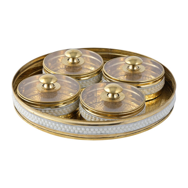 4-Section Design: Comes with four compartments inside, ideal for neatly storing and serving dry fruits, sweets, mukhwas, or snacks without mixing flavors.