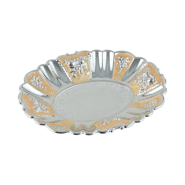 Elegant Color Accents: The golden-toned detailing adds a regal charm, beautifully contrasting with the silver finish for a rich, traditional look.
