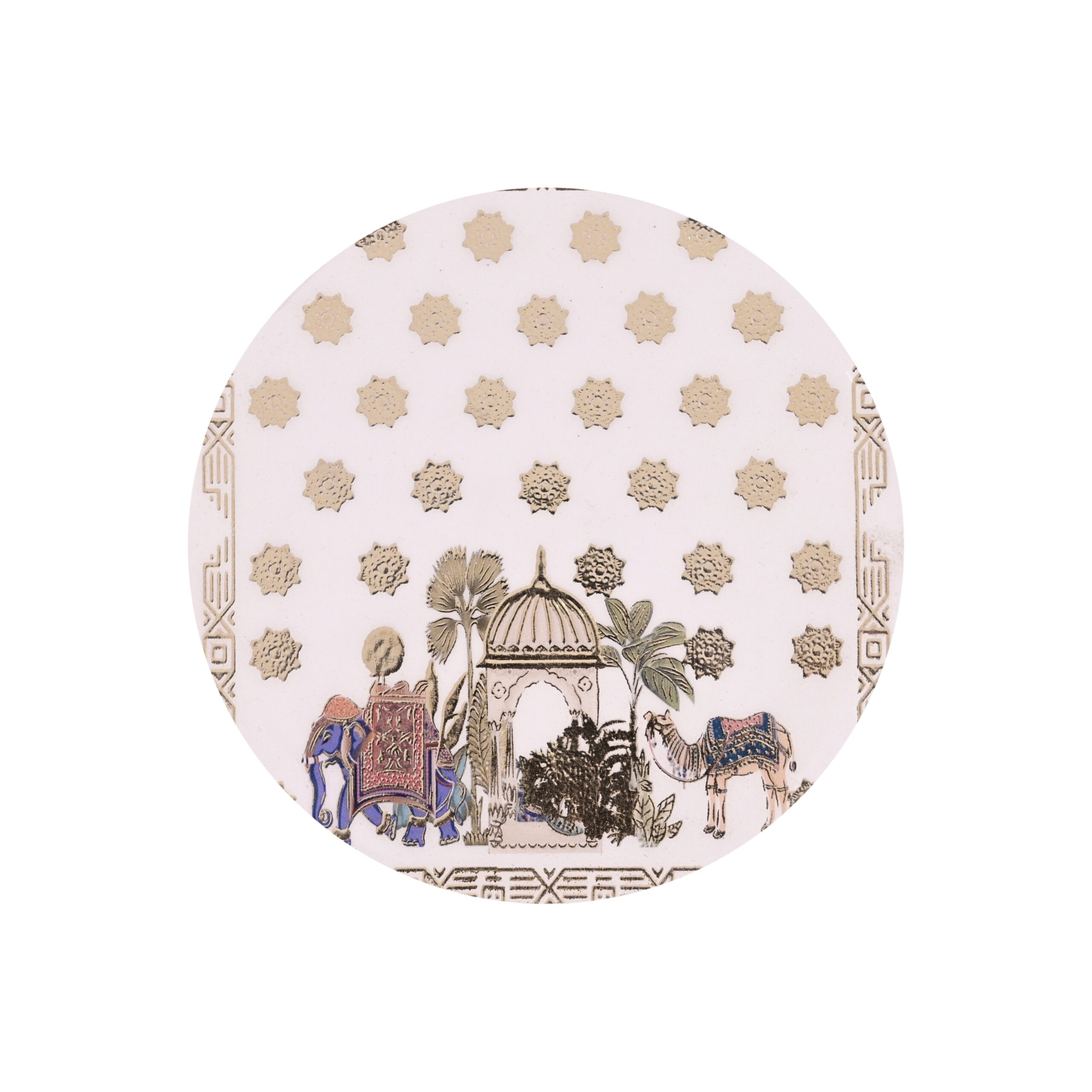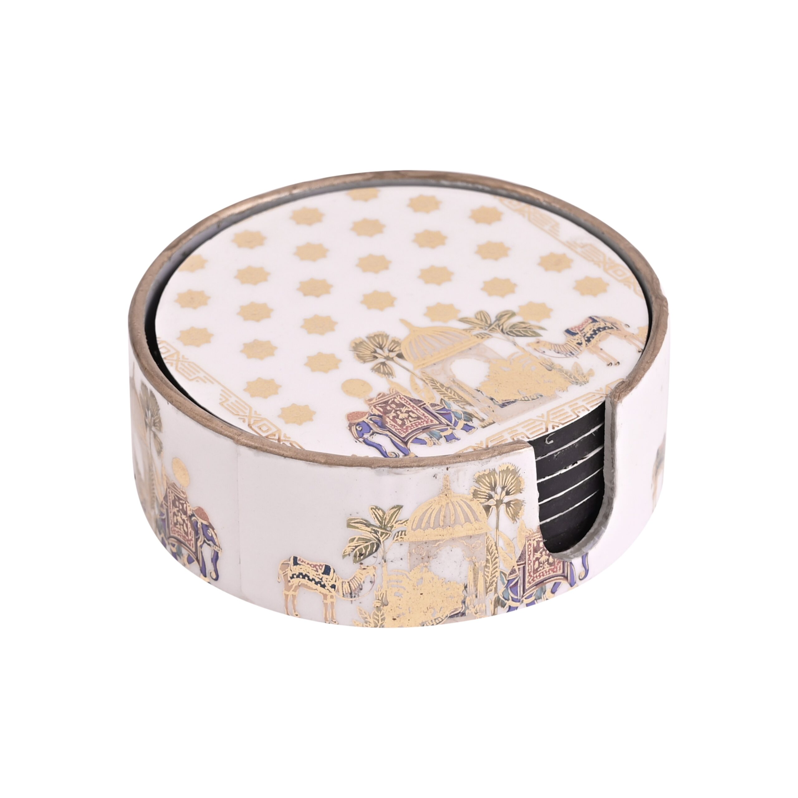 Ethnic Round MDF Coaster Set with Holder – 6 Pcs Royal Print Drink Coasters for Tea & Coffee