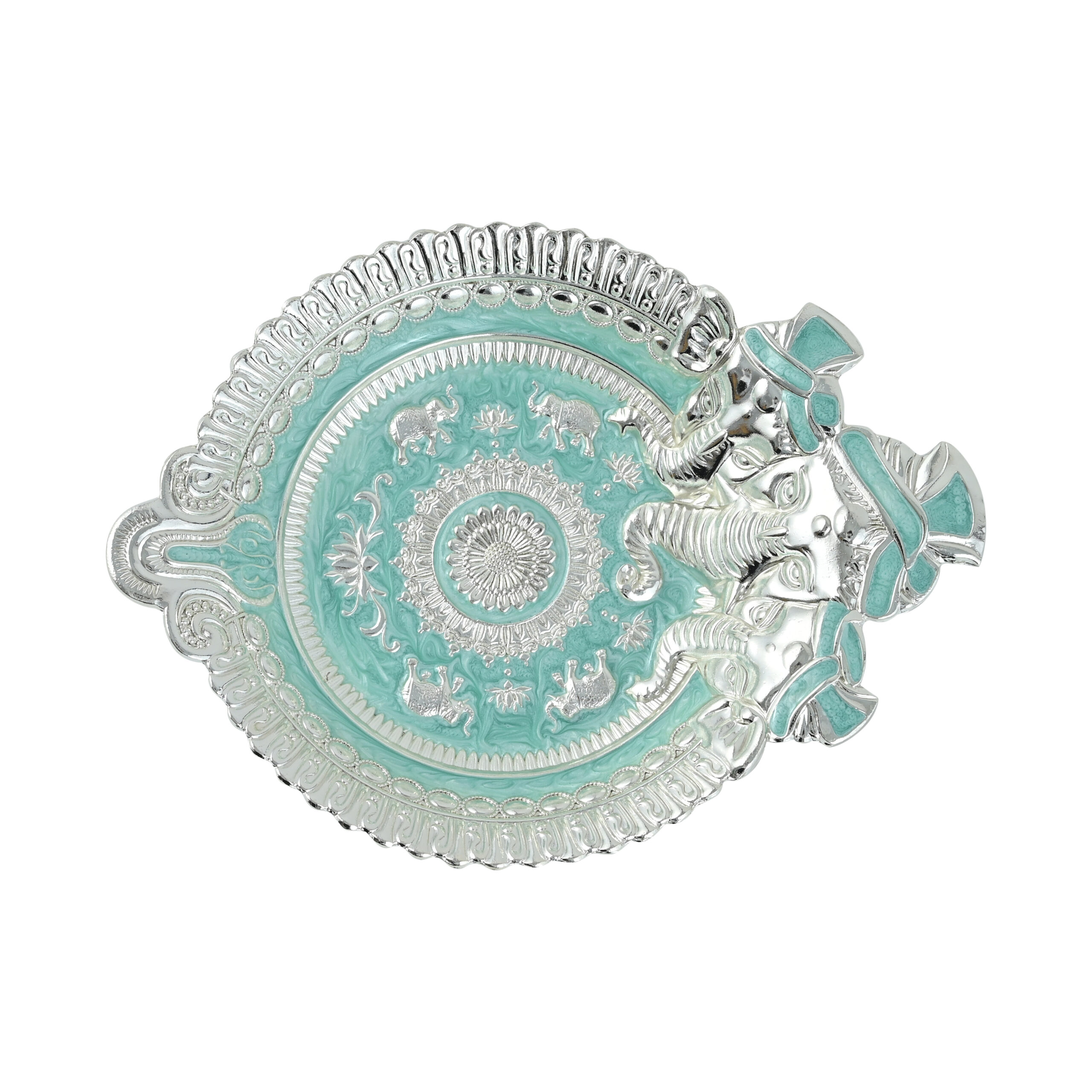 German Silver Ganesha Platter | Mint Green | Premium Home & Decor Gift Item