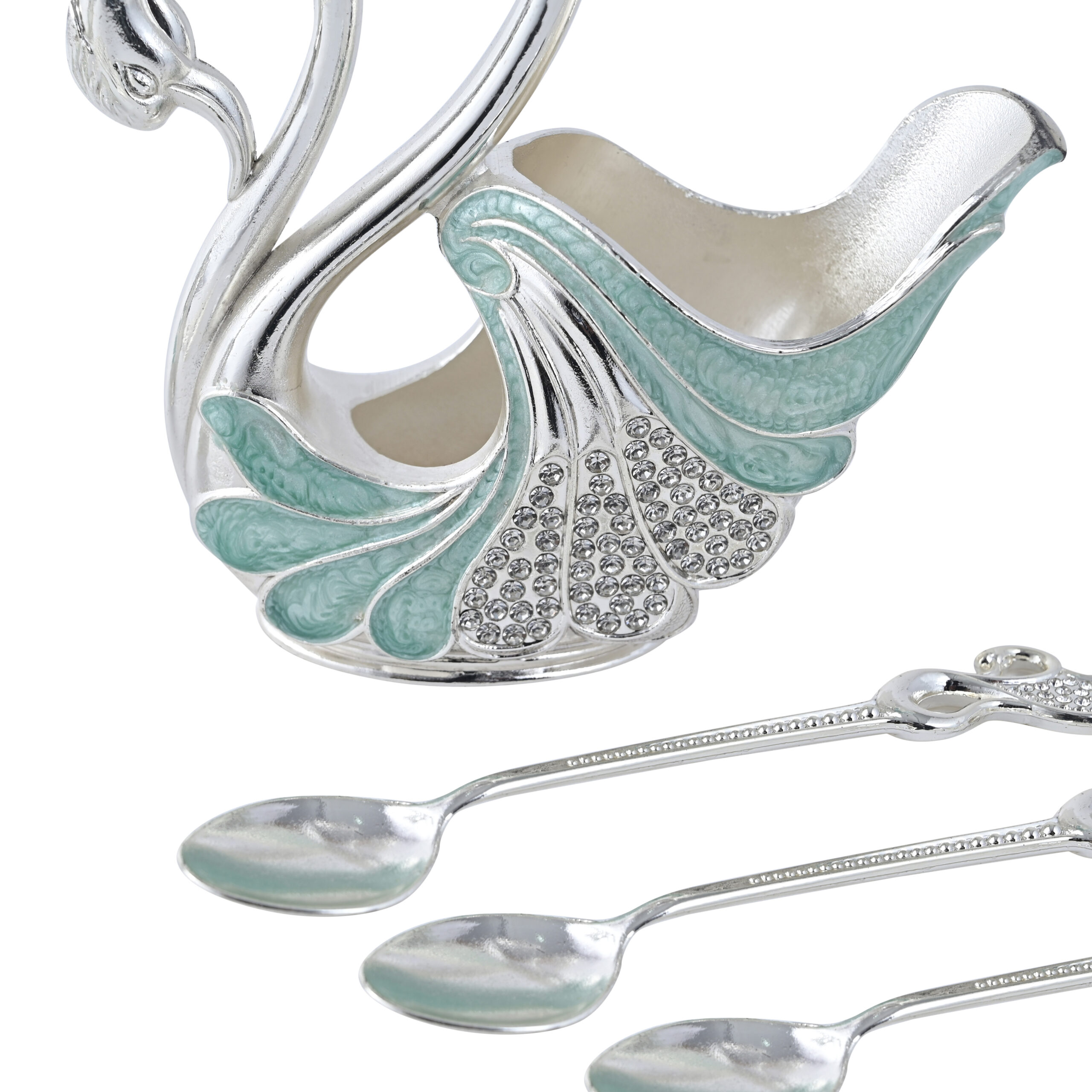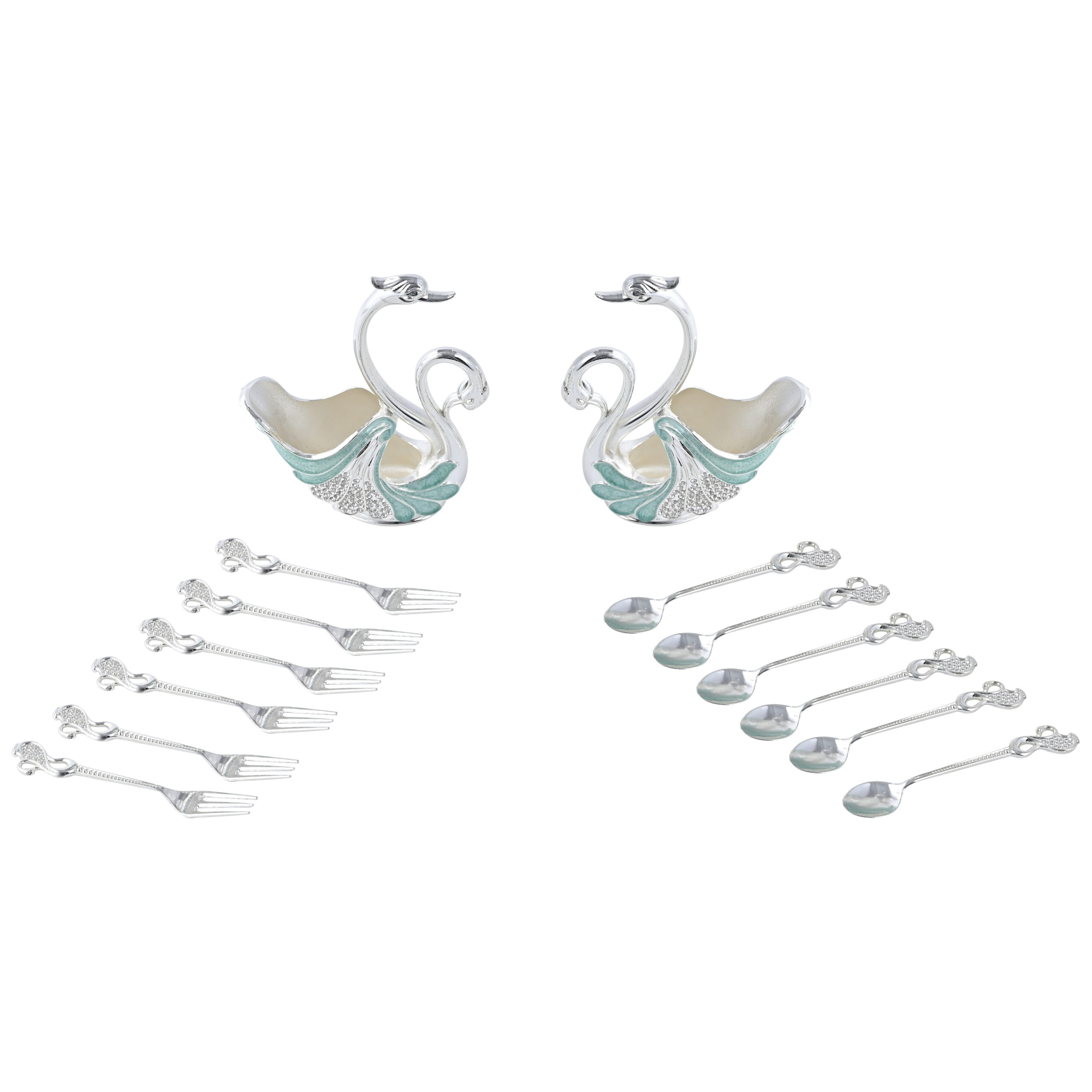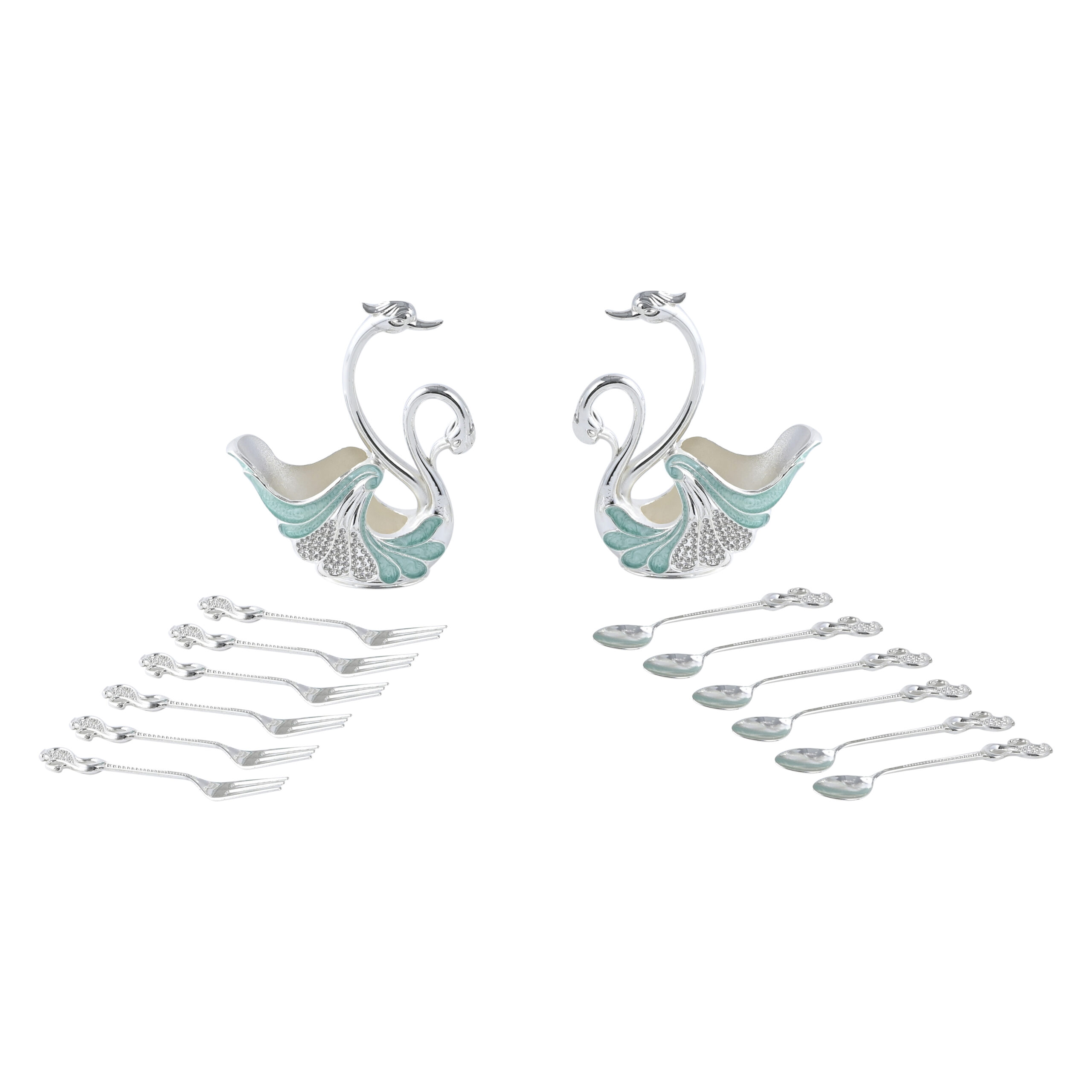 German Silver Luxury Swan-Shaped Cutlery Set – Decorative Fork & Spoon Holder (Silver & Mint Blue)