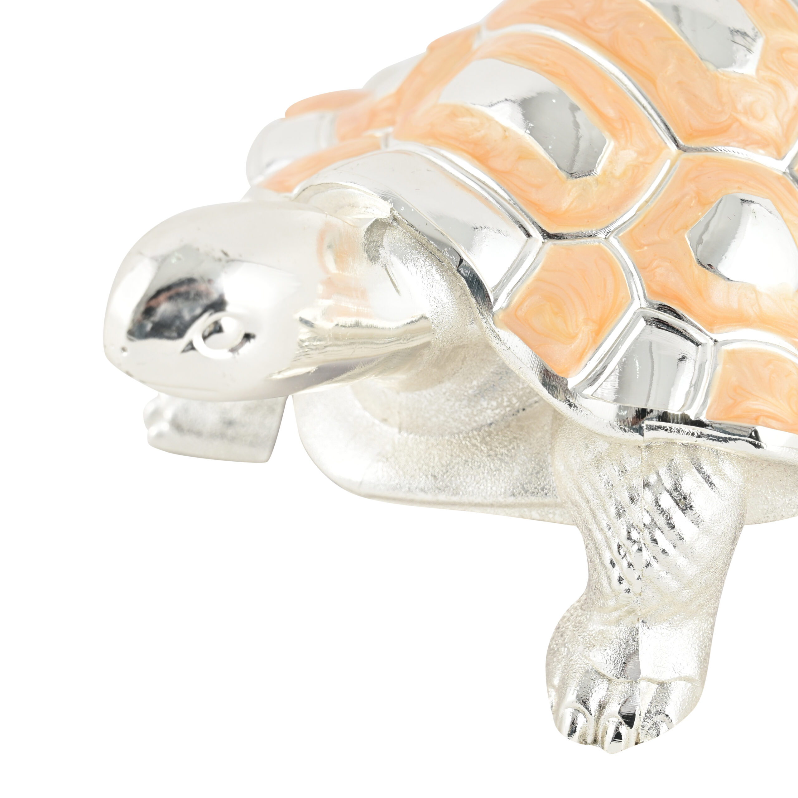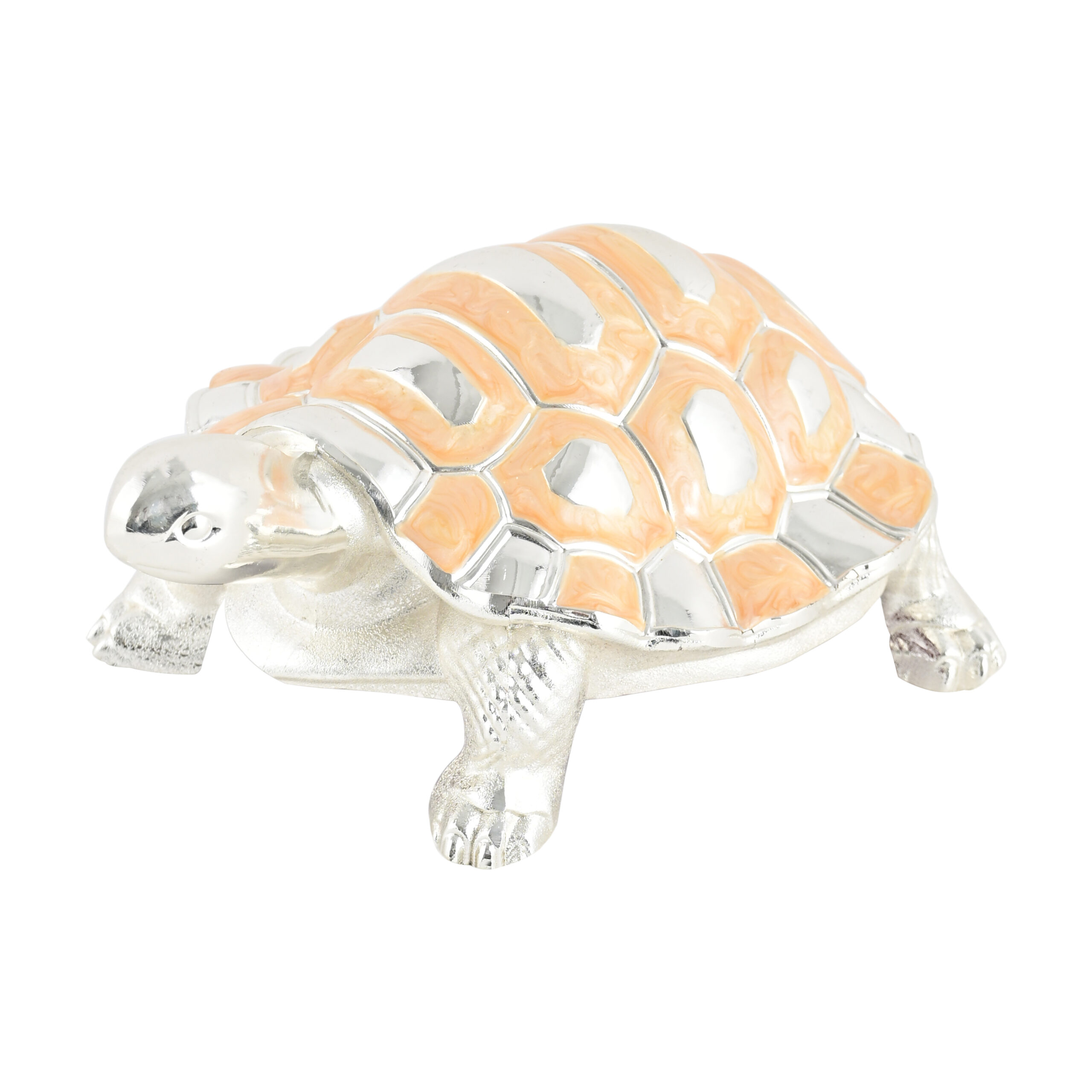 German Silver & Orange Decorative Tortoise Figurine – Elegant Metal Home Décor Showpiece