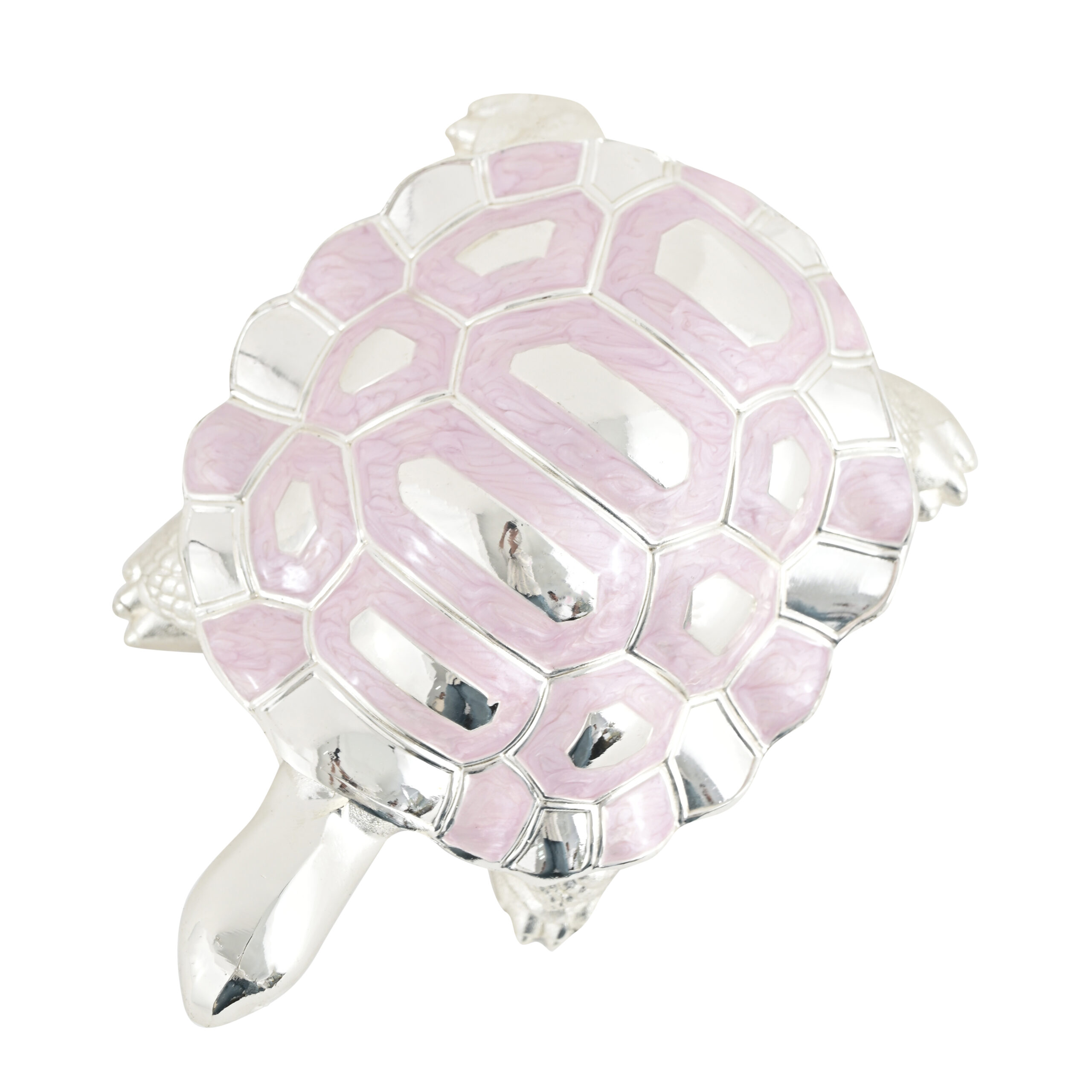 German Silver Pink and Silver Decorative Tortoise Figurine – Elegant Metal Home Décor Showpiece