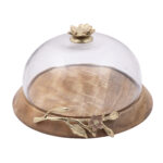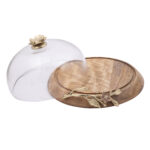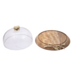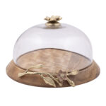 Glass Cake Dome with Wooden Base & Aluminium Leaf – Elegant Cake Stand with Lid for Serving & Table Décor