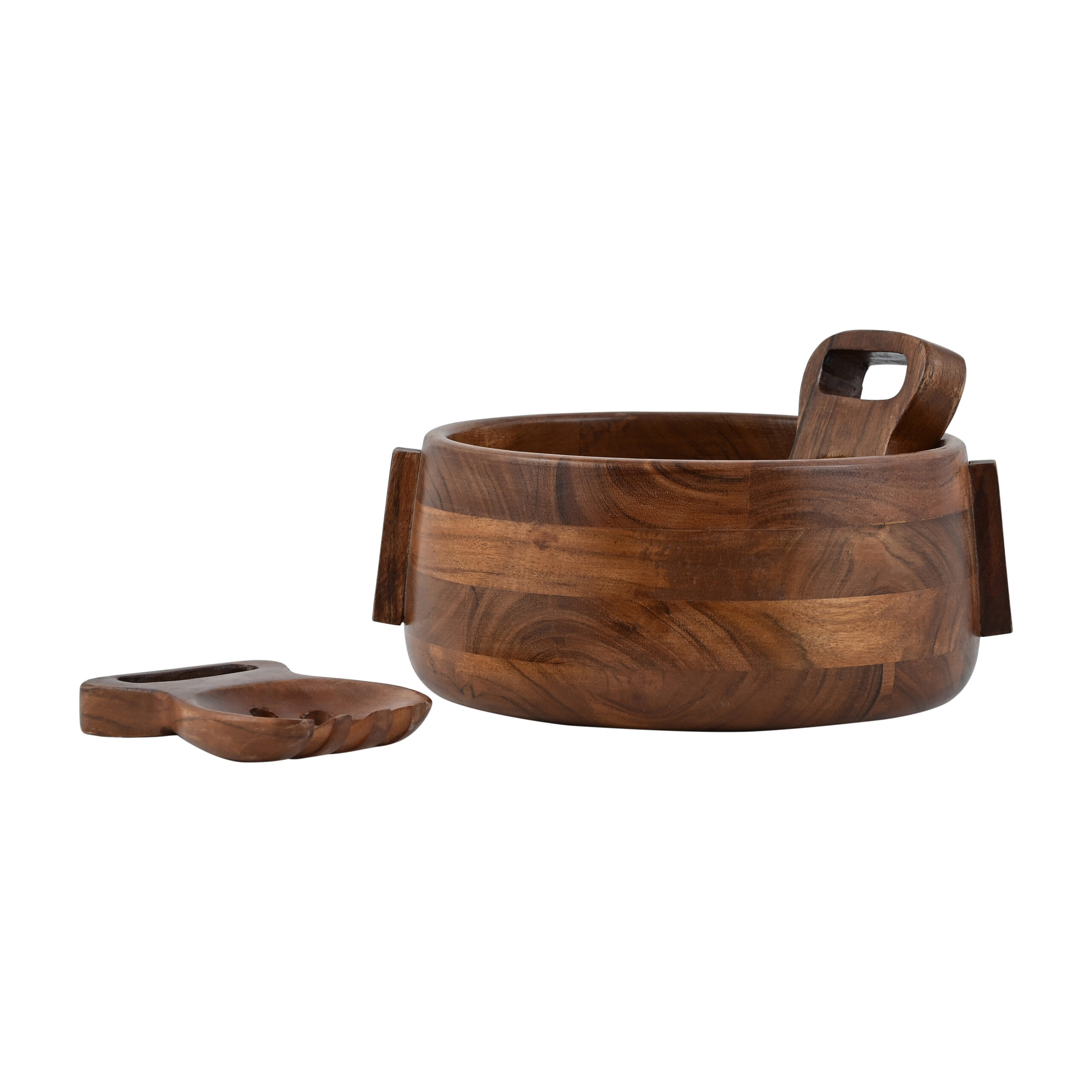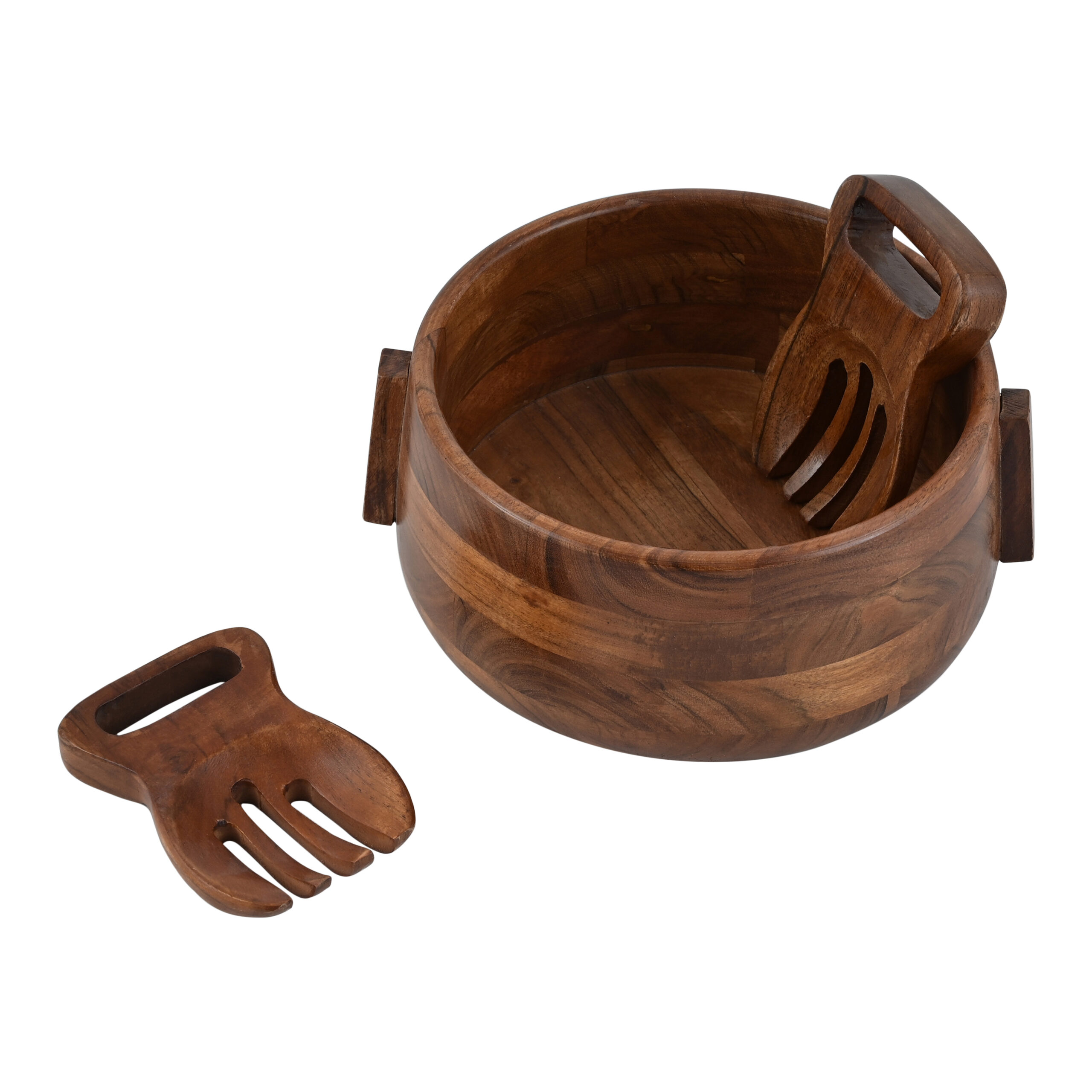 Handcrafted Wooden Salad Bowl with 2 Hands – Premium Tabletop Serveware