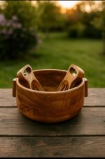 Be the first to review “Handcrafted Wooden Salad Bowl with 2 Hands – Premium Tabletop Serveware” Cancel reply