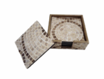 MDF Coaster Set of 6 with Holder – Square Wooden Drink Coasters with Decal/Enamel Mosaic Design