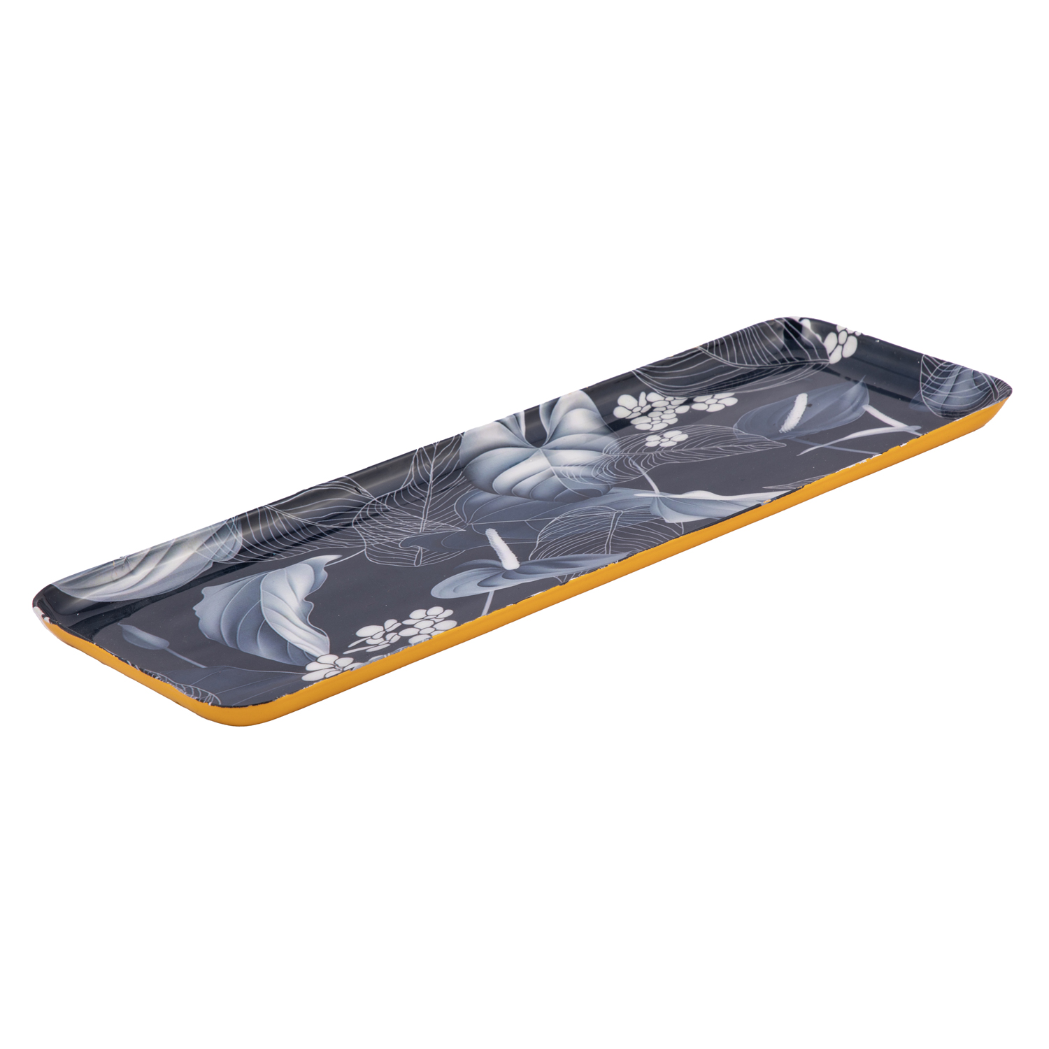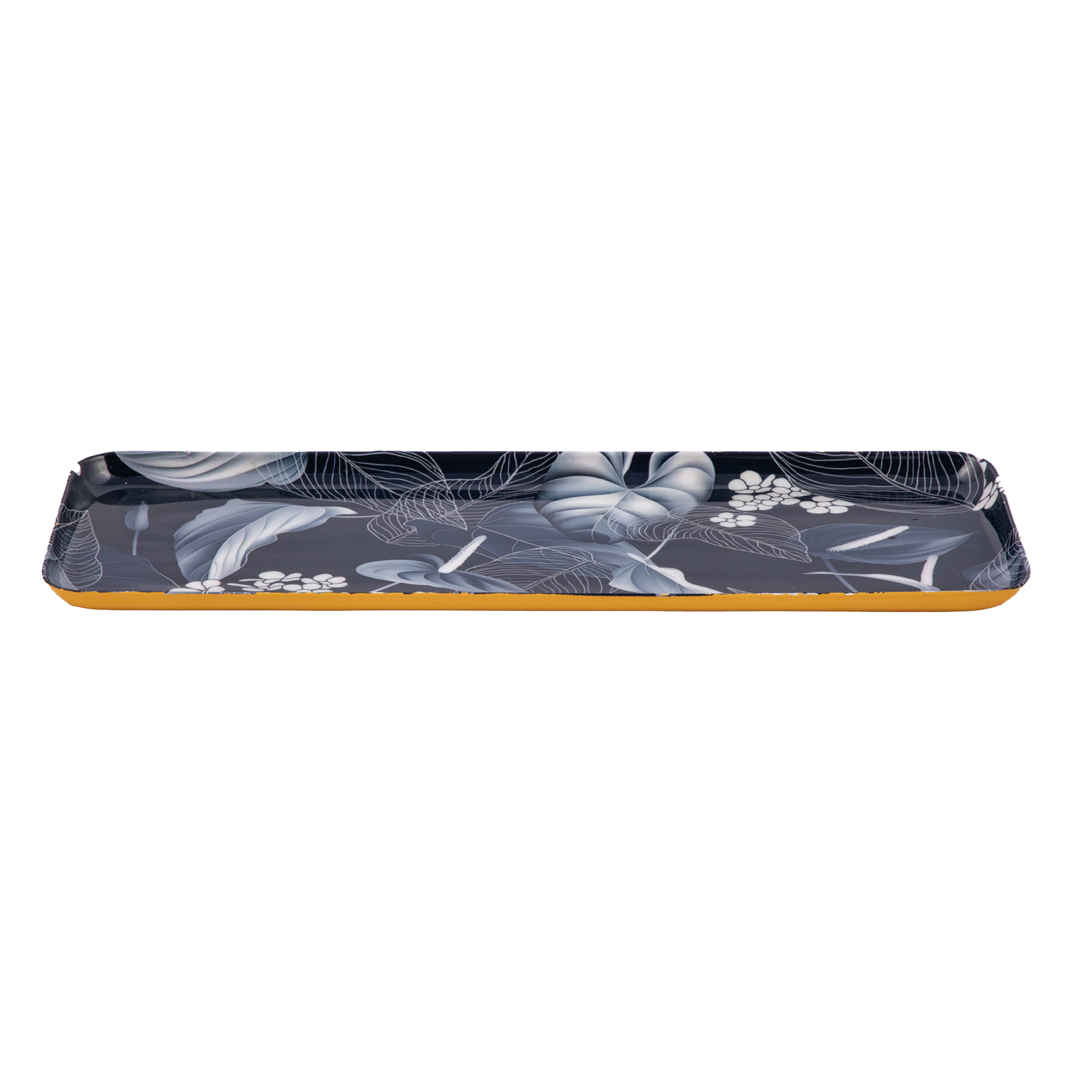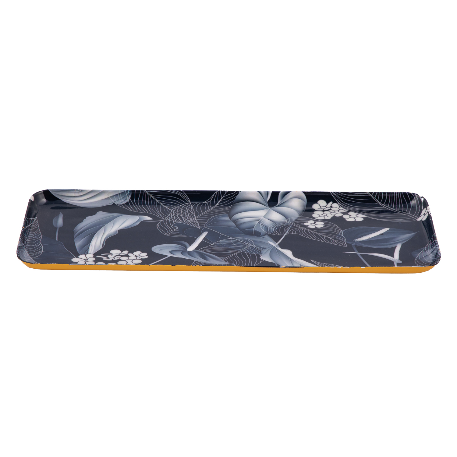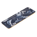 Metal Iron Serving Tray – 33×11 Cm Rectangular Decorative Floral Serving Tray, Navy Blue and White for Serving