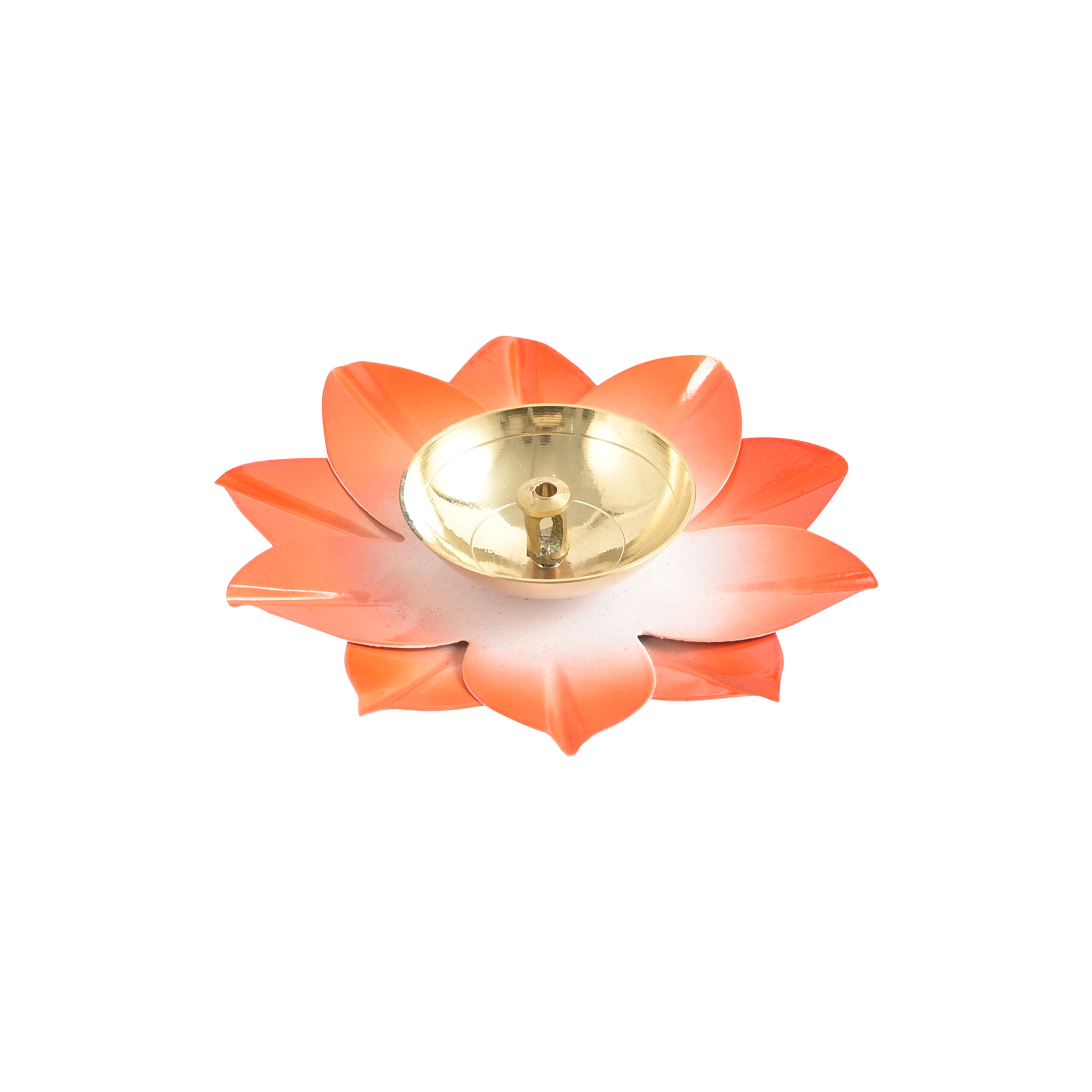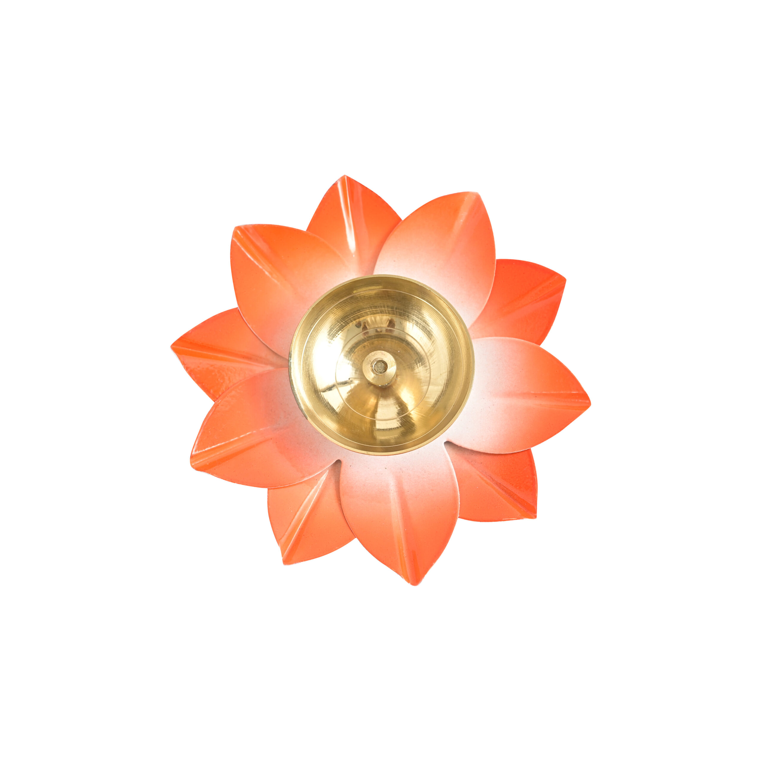 Traditional Design: Beautiful lotus-shaped diya crafted in premium brass with a vibrant Orange finish, symbolizing purity and devotion.