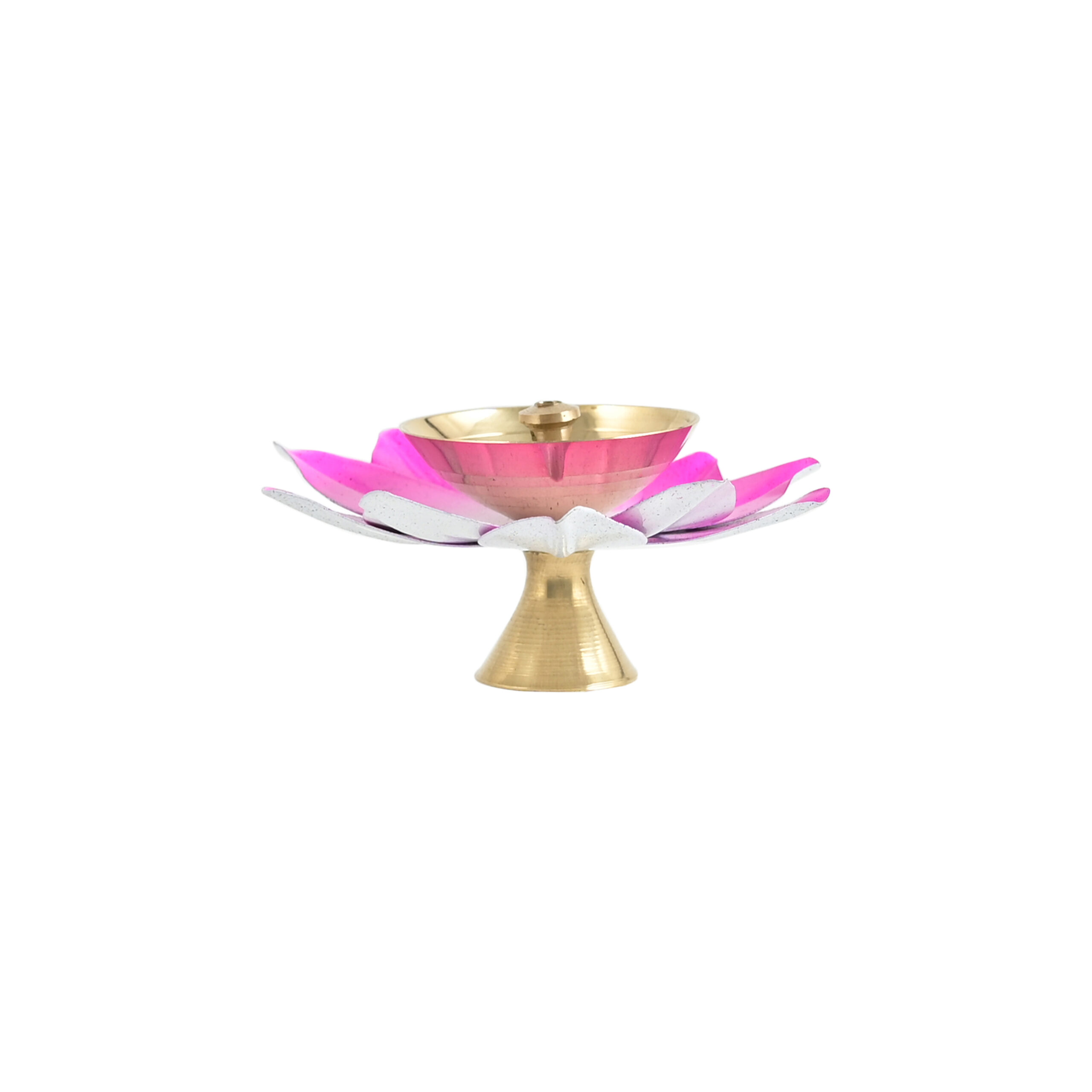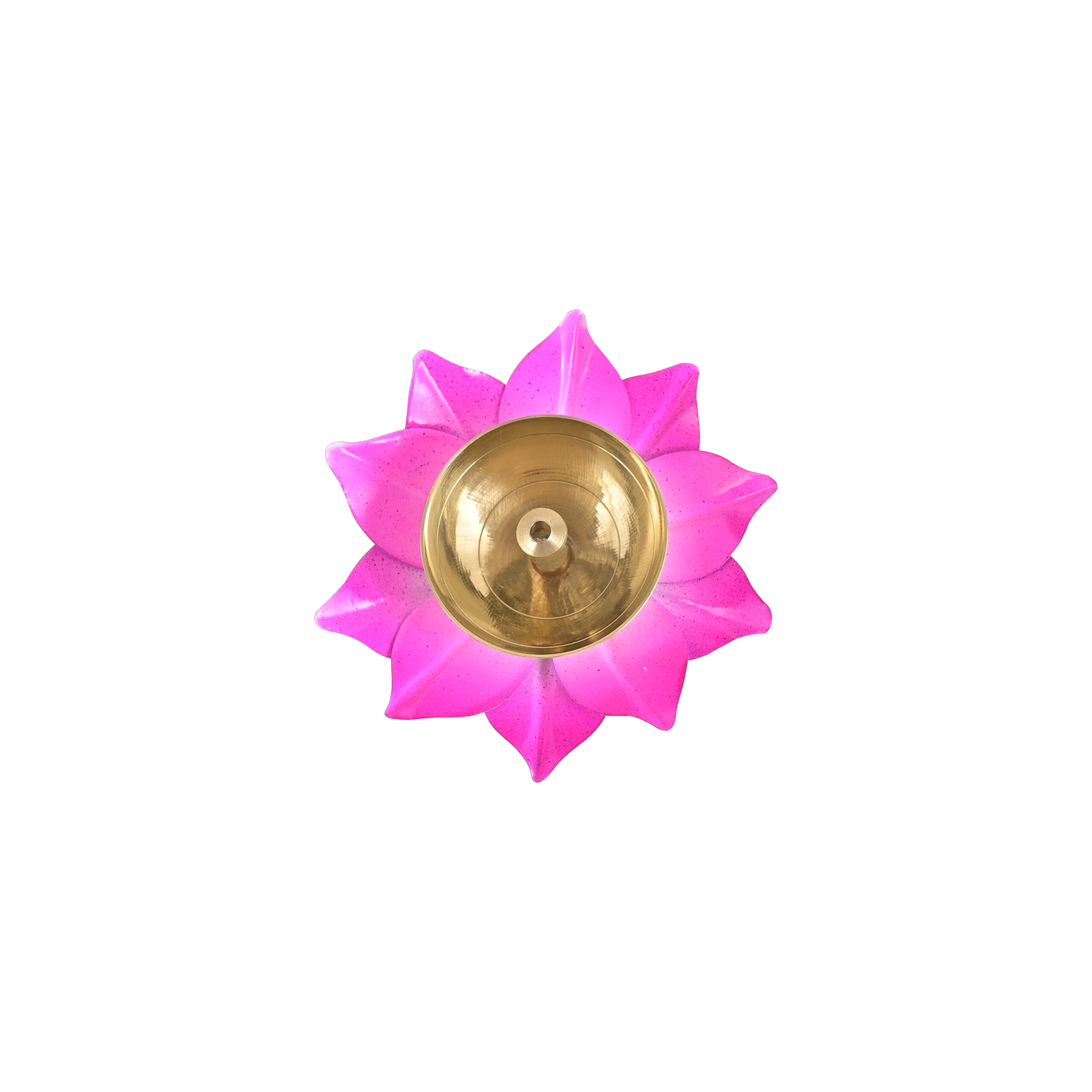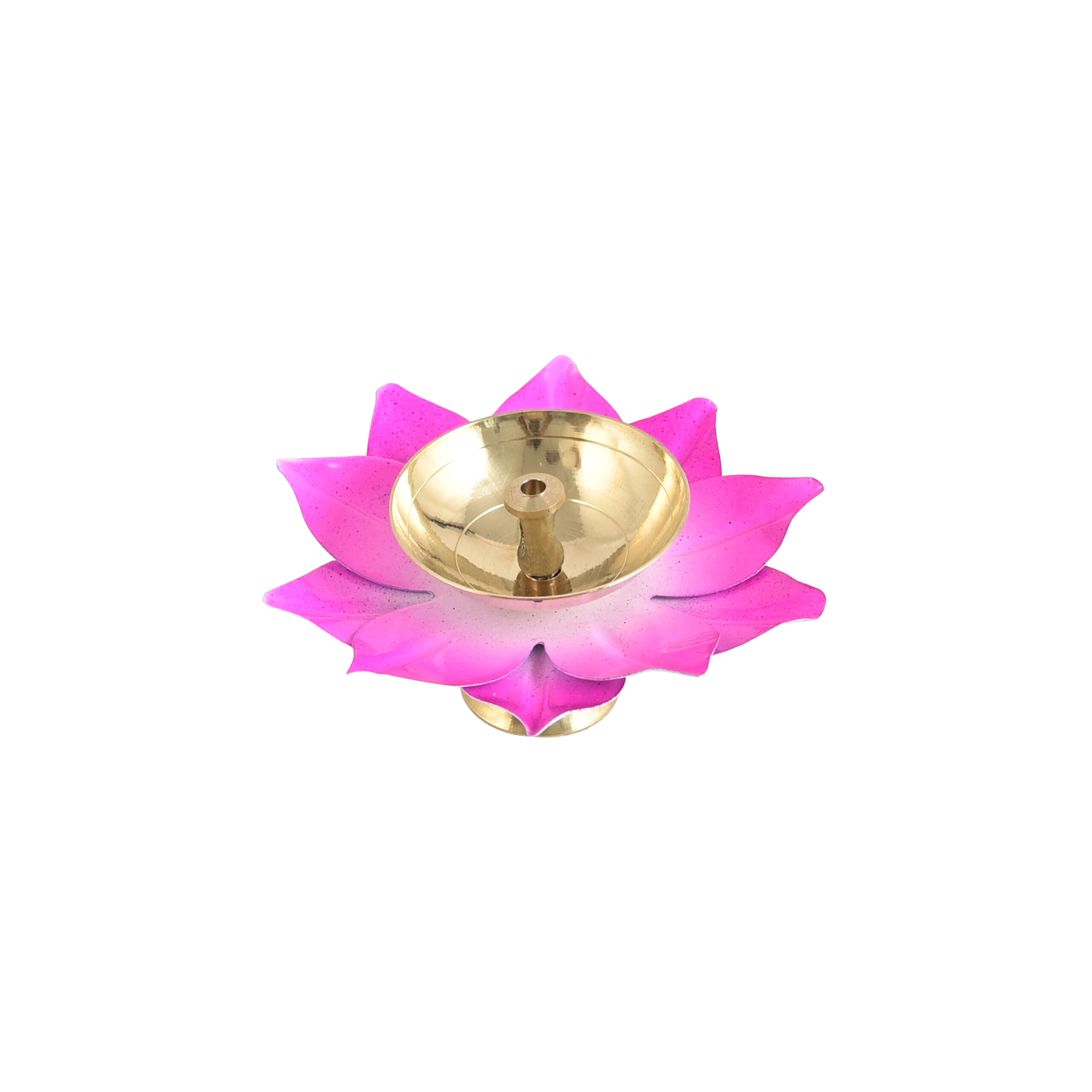 Traditional Design: Beautiful lotus-shaped diya crafted in premium brass with a vibrant Pink finish, symbolizing purity and devotion.