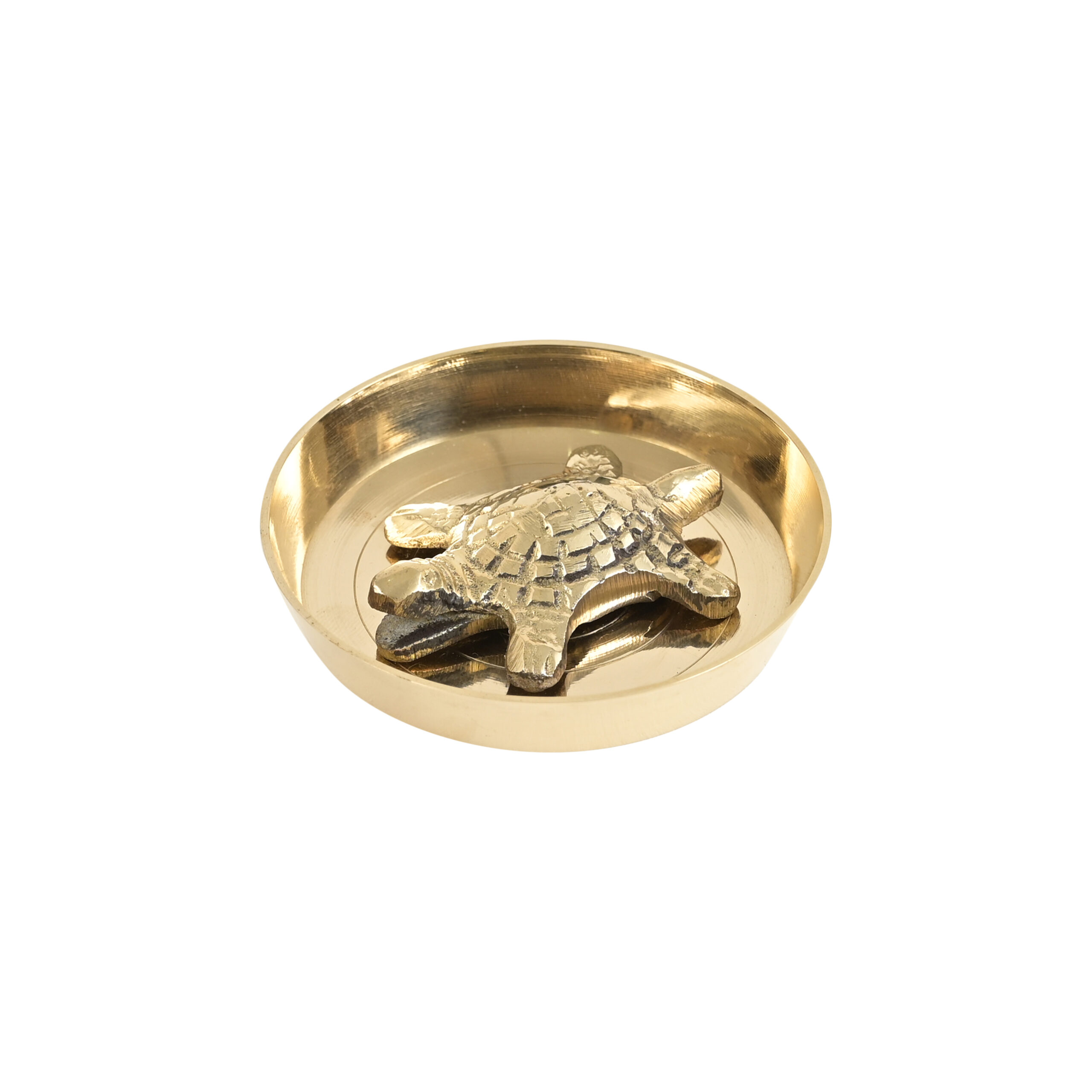 Auspicious Symbol: Beautifully crafted brass tortoise with plate, believed to attract wealth, prosperity, and positive energy as per Feng Shui & Vastu.