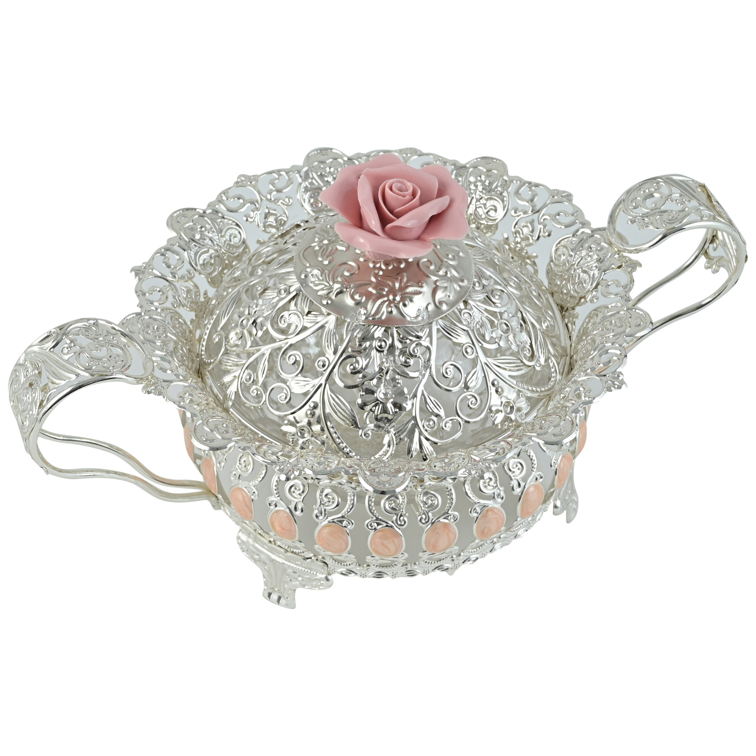Round Orange Chirag Bowl | German Silver | Silver | Premium Home & Decor Gift Item