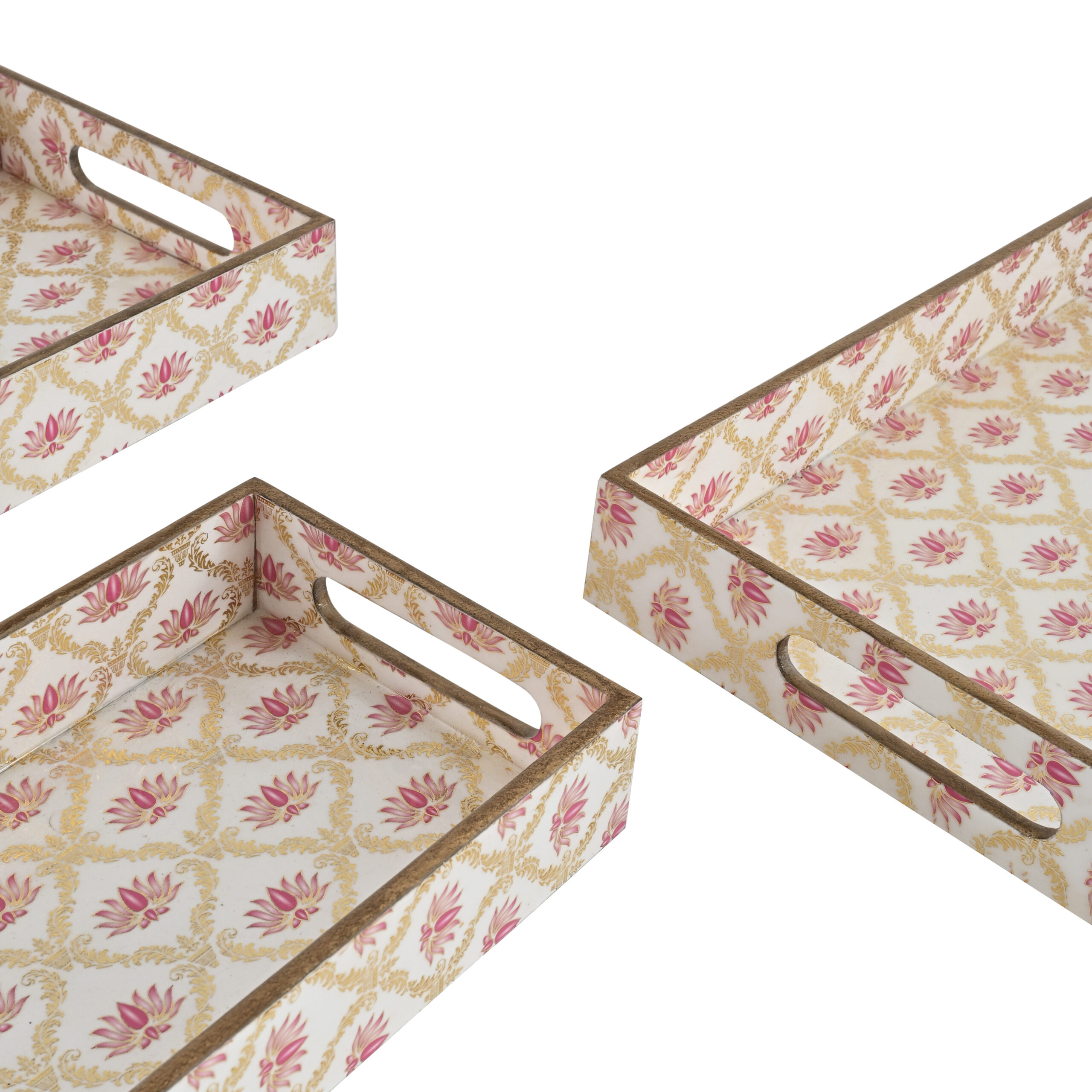 Set of 3 Wooden Serving Trays – MDF Enamel Décor Trays with Elegant Golden Motifs for Kitchen, Dining & Gifting