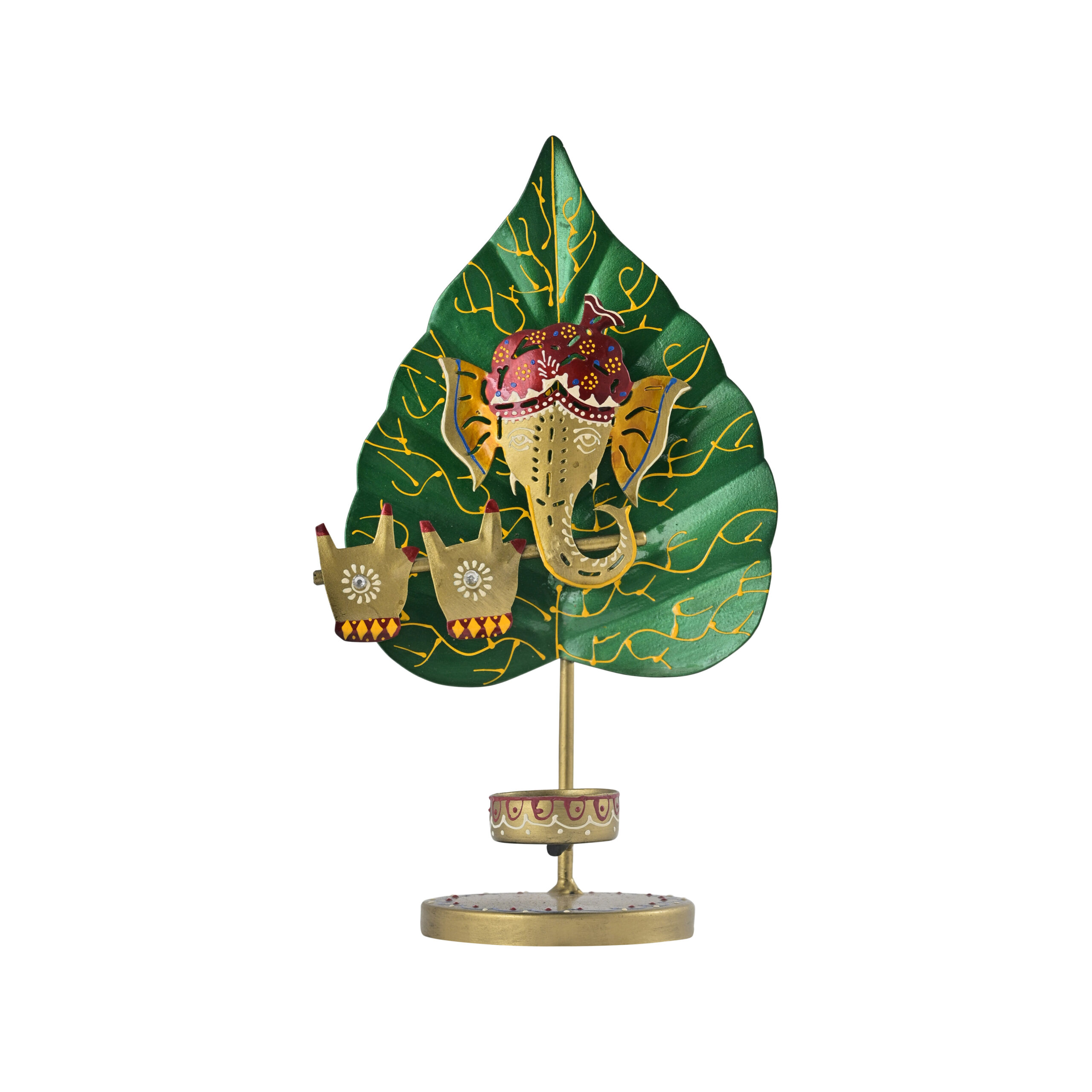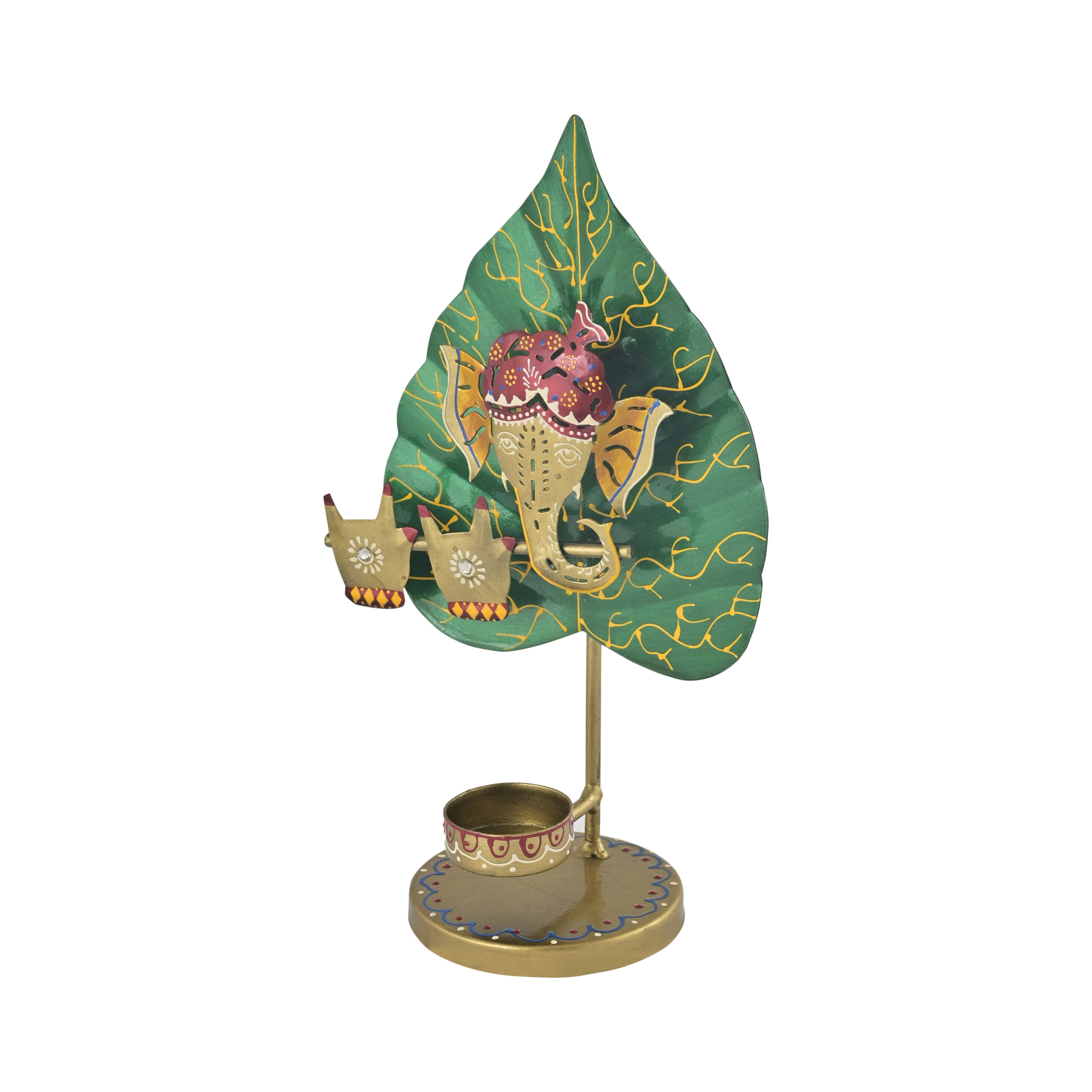 The Ganesha Collection Leaf Ganesha T-Light Holder – Handpainted Decorative Showpiece