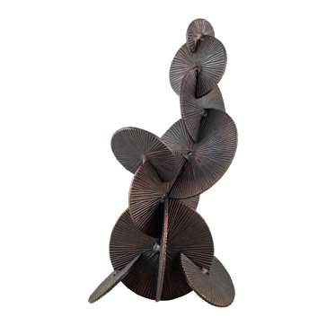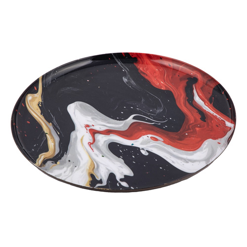 25cm Round Iron Serving Tray – Abstract Swirl Design in Black, Red, White & Gold