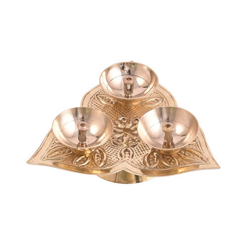 3 Wick Set Brass Diya for Puja, Aarti & Diwali Decoration