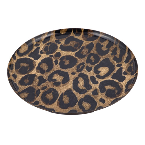 25cm Round Leopard Print Metal Serving Tray – Elegant Animal Print Decorative Tray